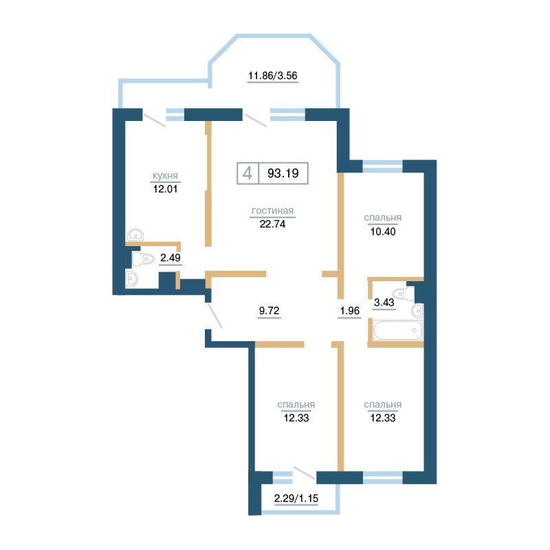 | 4-комн | от 93 м² | от 13,51 млн ₽ | 3 |