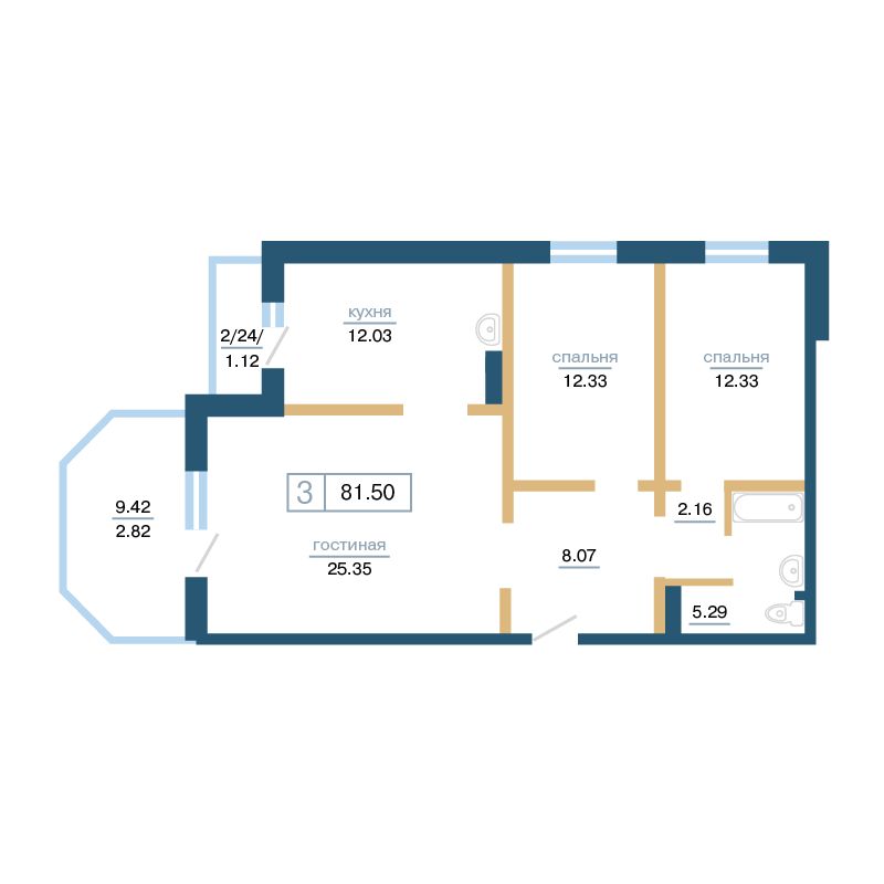| 3-комн | от 82 м² | от 11,98 млн ₽ | 2 |