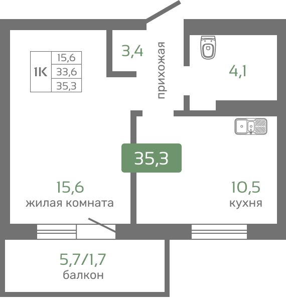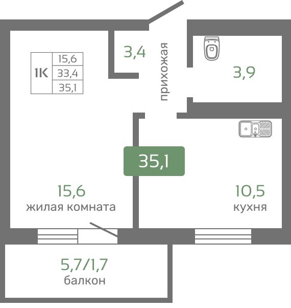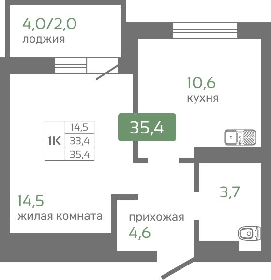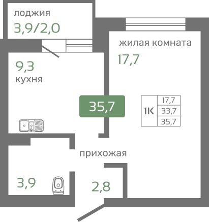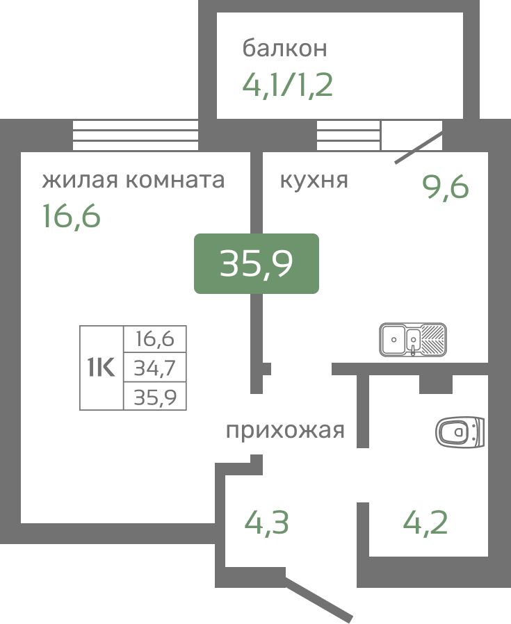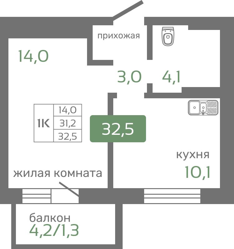 | 1-комн | от 32 м² до 43 м² | от 4,41 млн ₽ | 131 |