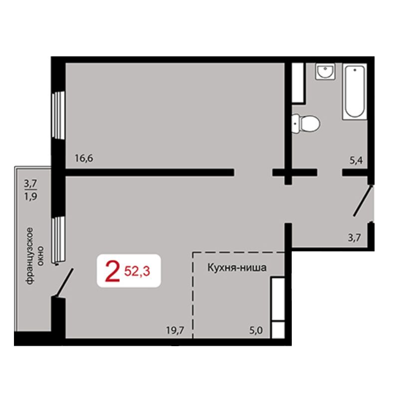 | 2-комн | от 52 м² до 56 м² | от 0 тыс. млн ₽ | 9 |