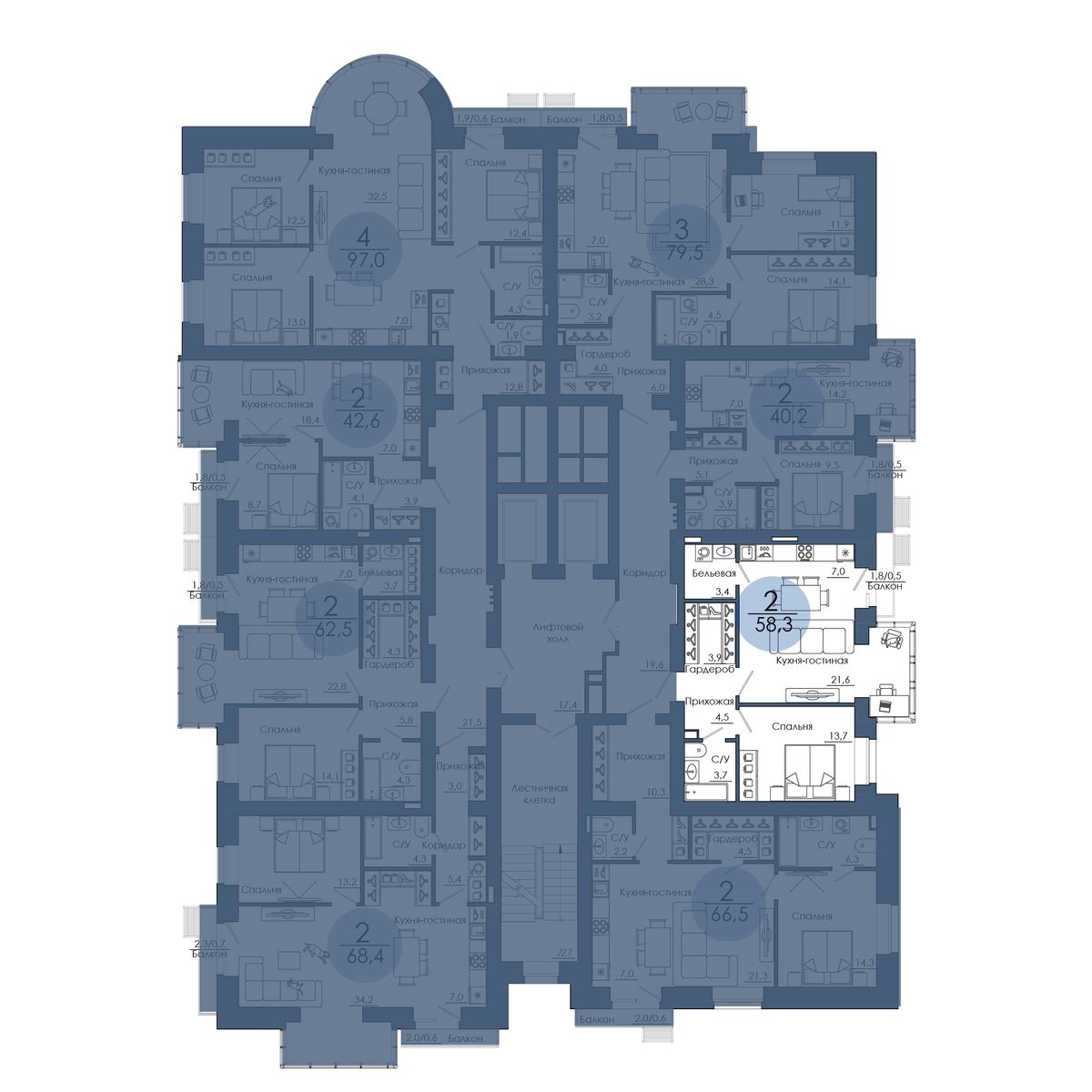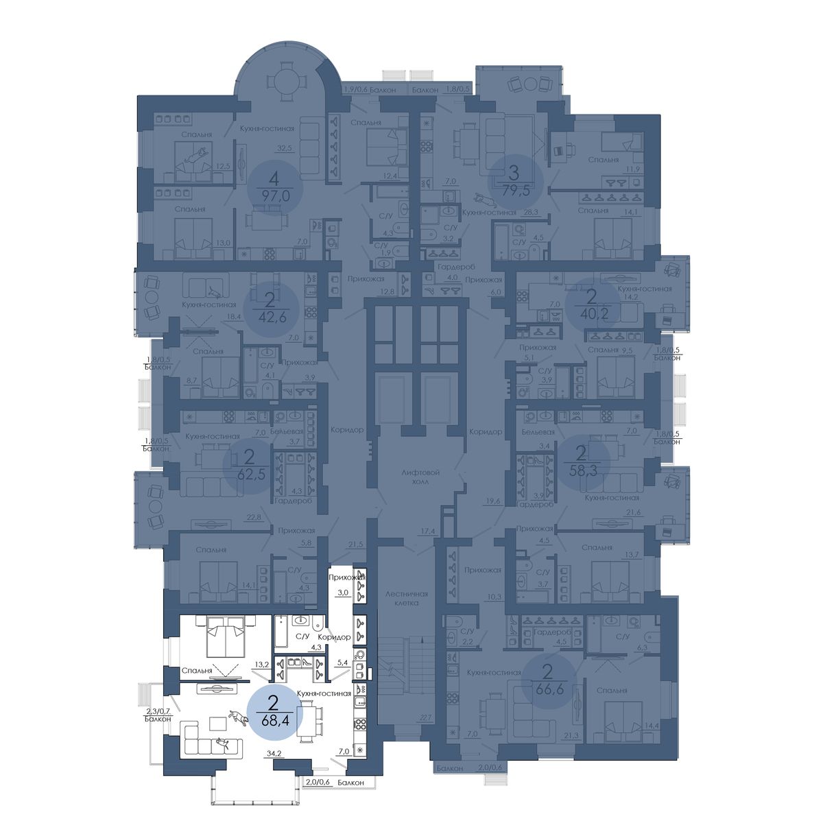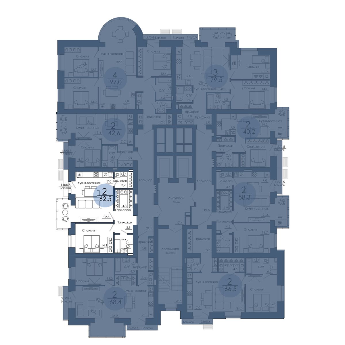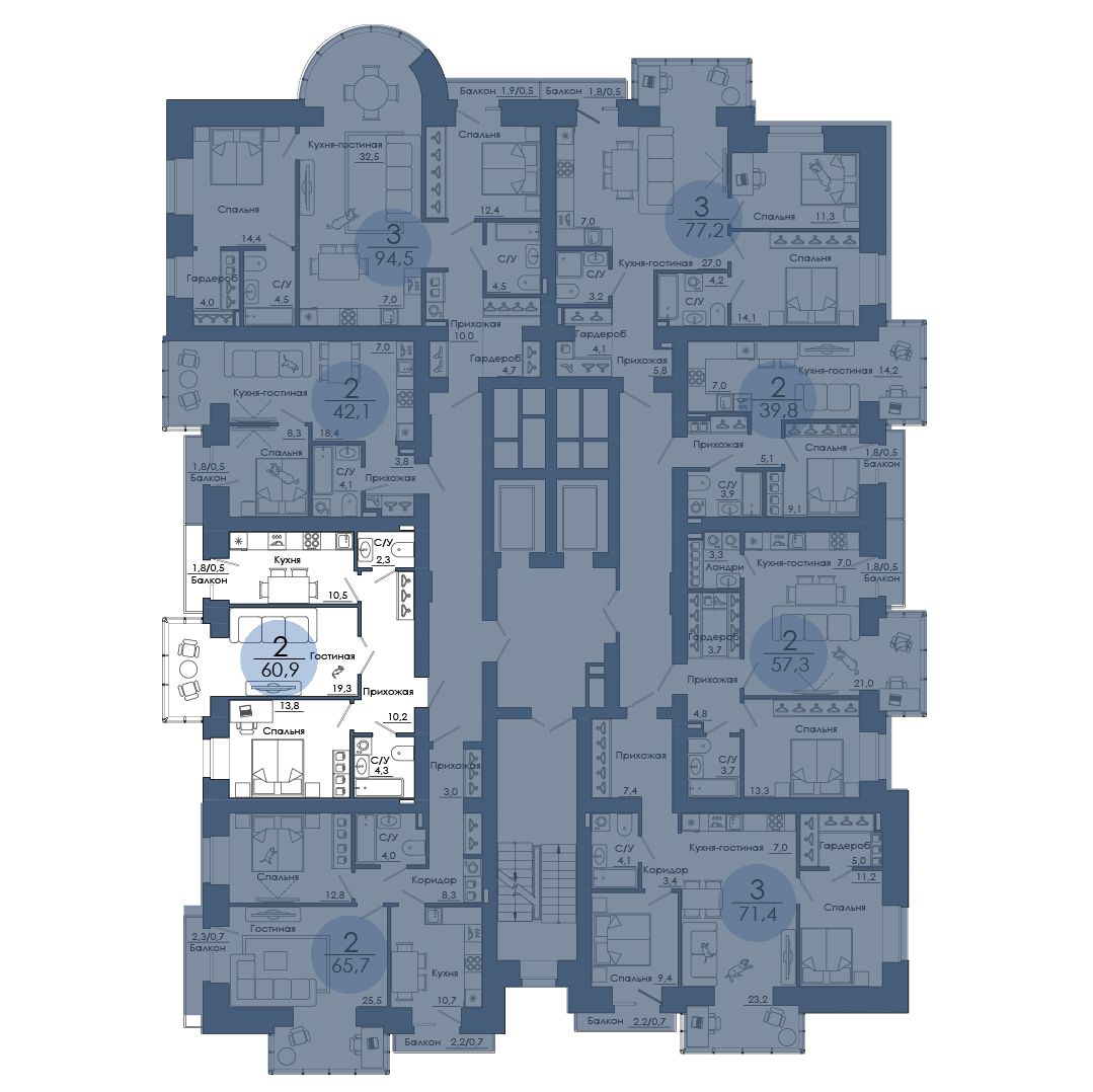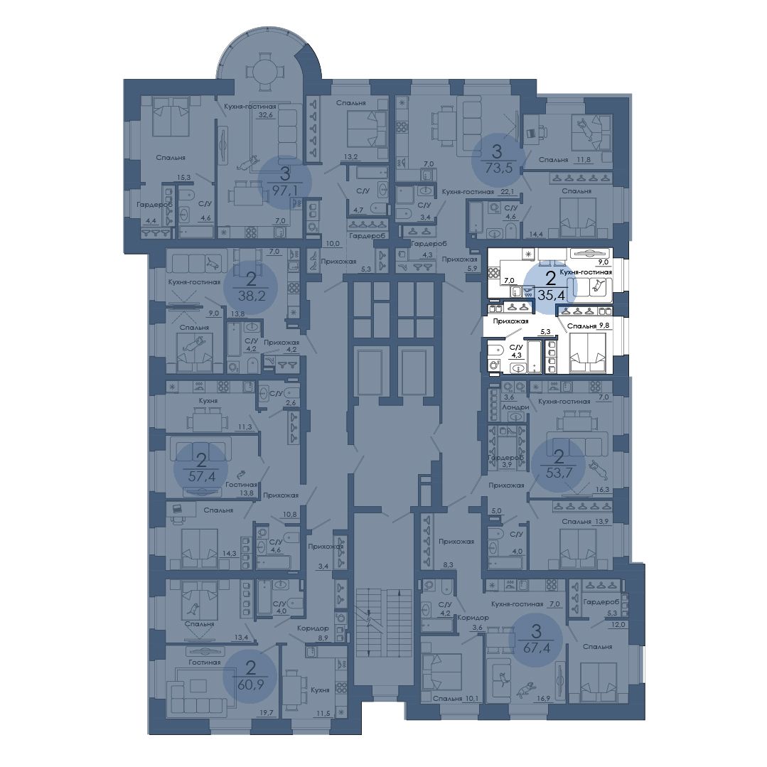 | 3-комн | от 67 м² до 97 м² | от 0 тыс. млн ₽ | 61 |