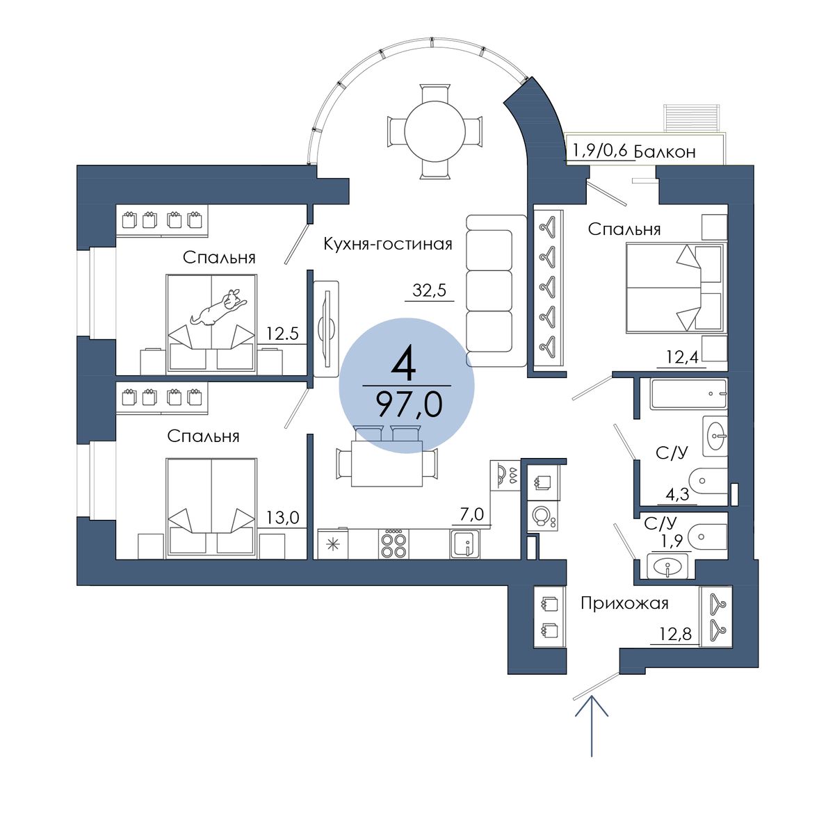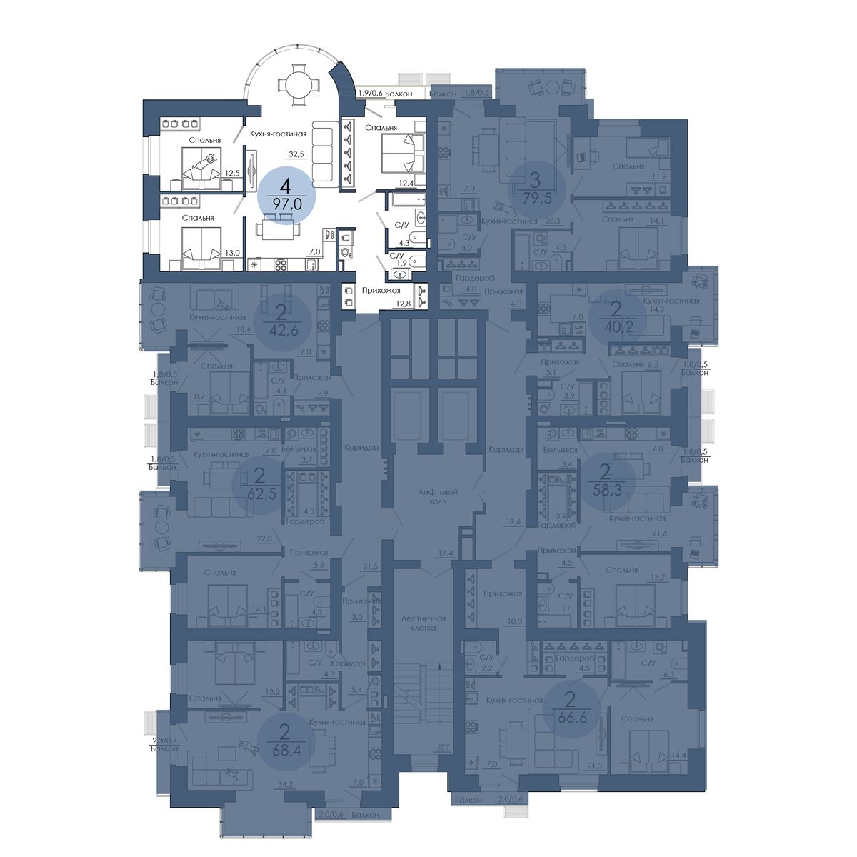 | 4-комн | от 95 м² до 98 м² | от 0 тыс. млн ₽ | 17 |