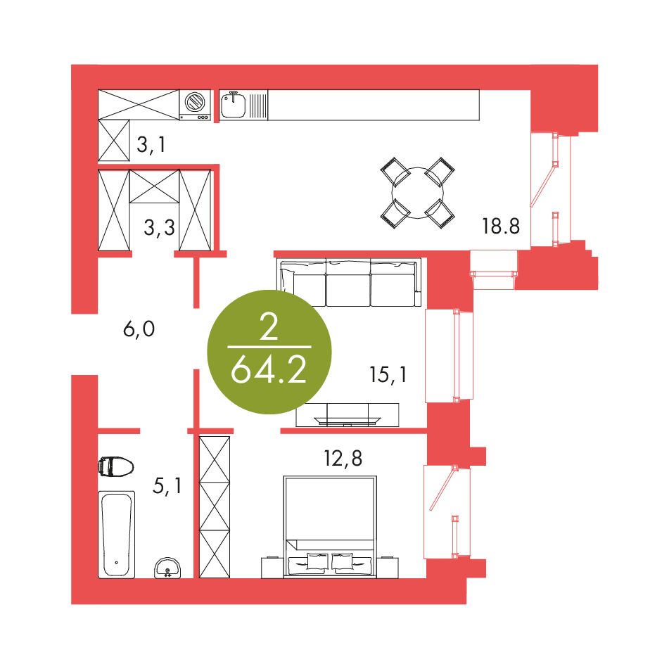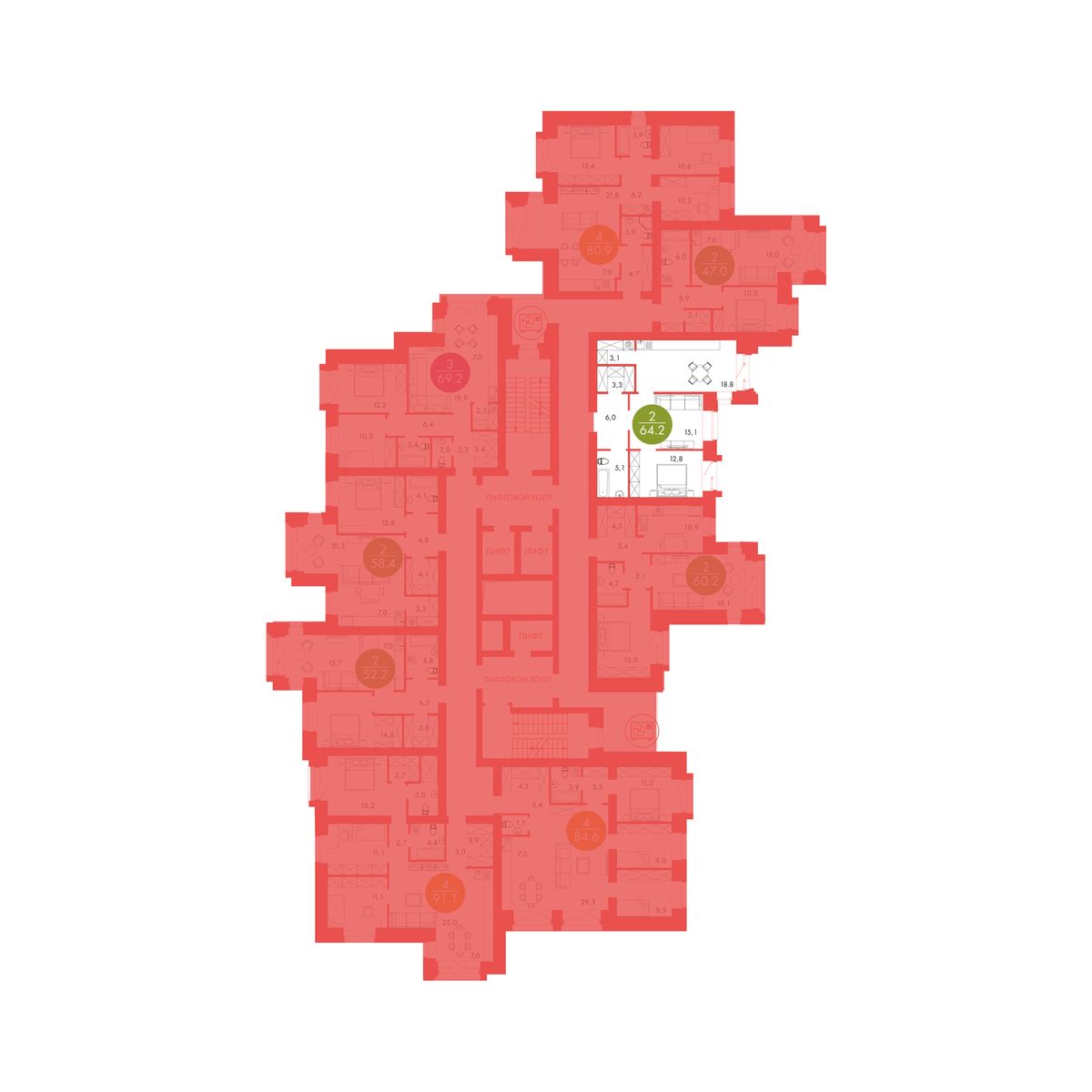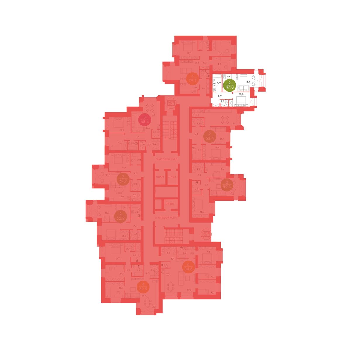 | 2-комн | от 47 м² до 64 м² | от 10,32 млн ₽ | 22 |