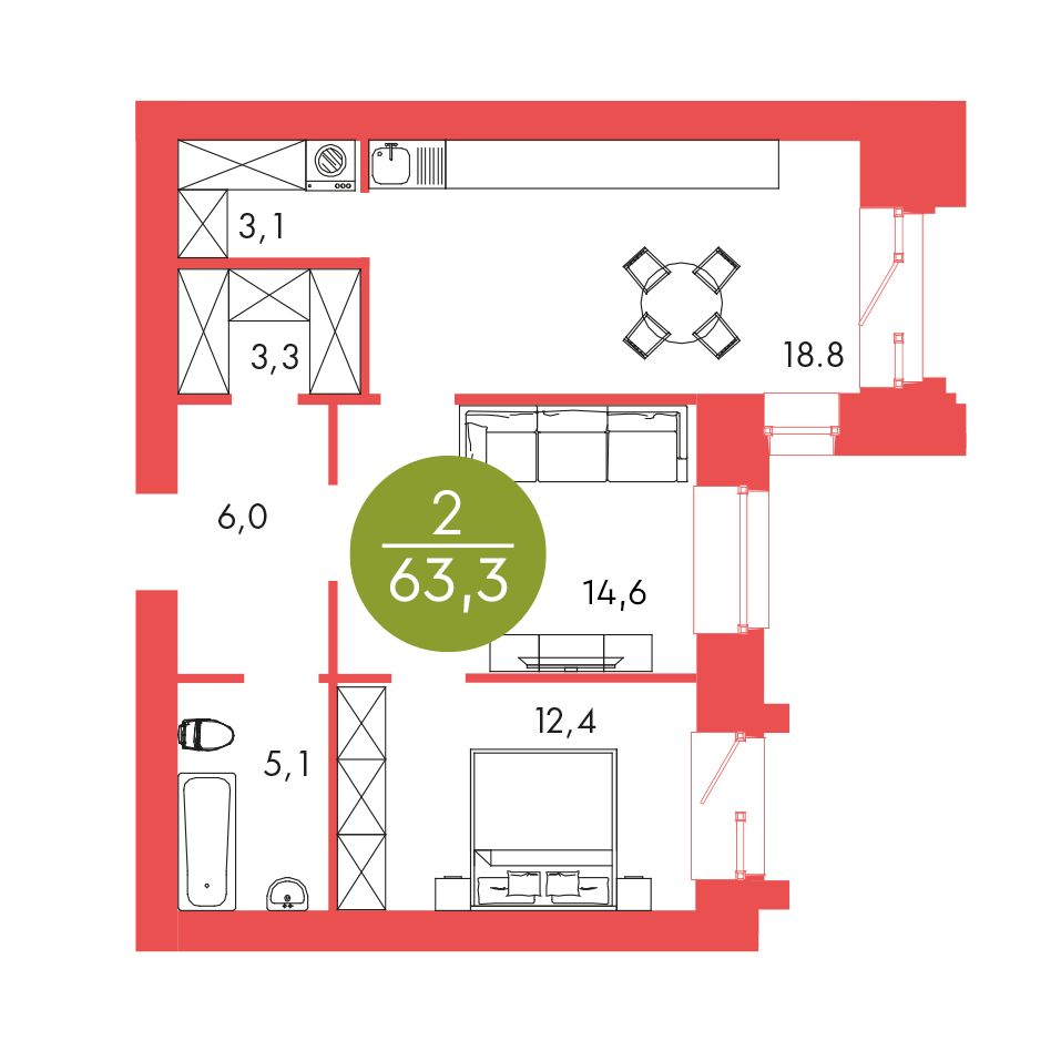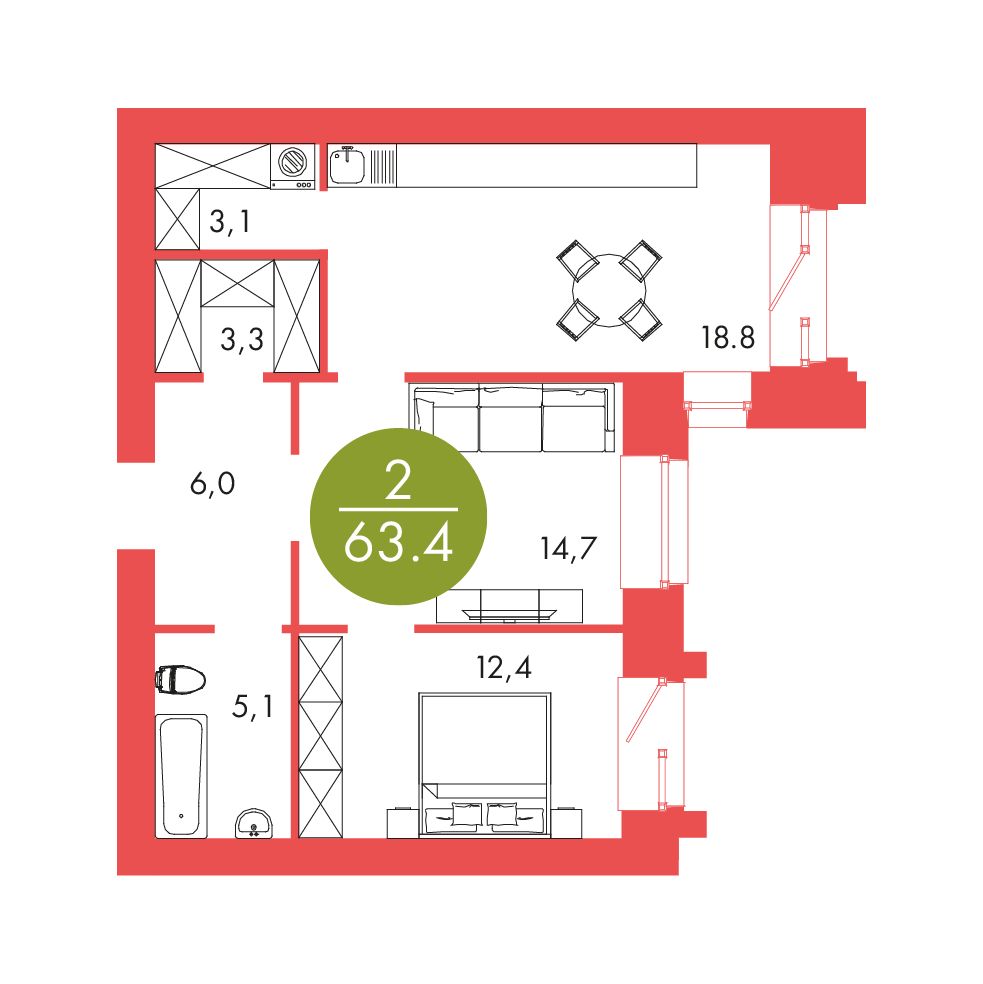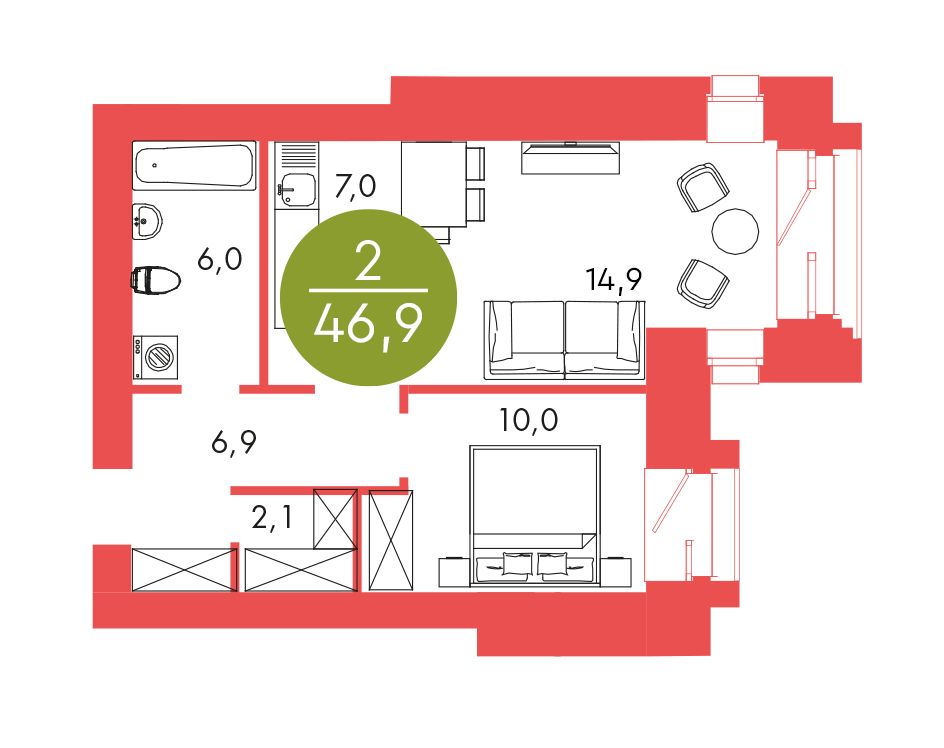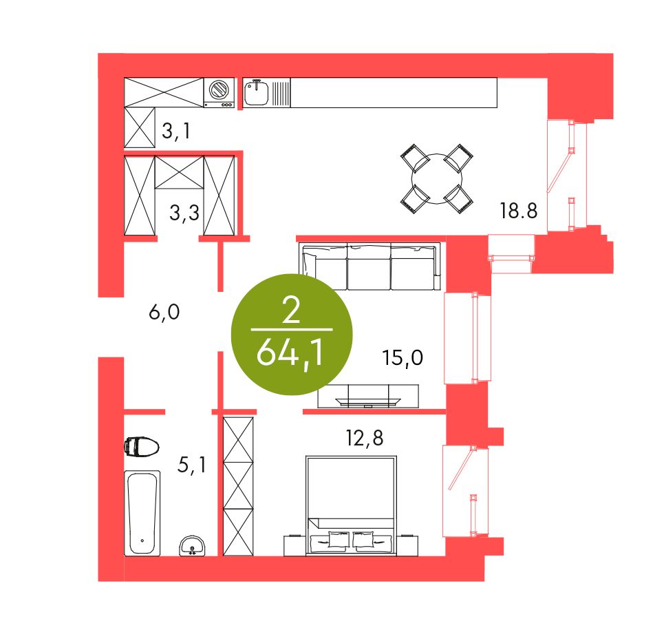 | 2-комн | от 47 м² до 64 м² | от 10,32 млн ₽ | 22 |