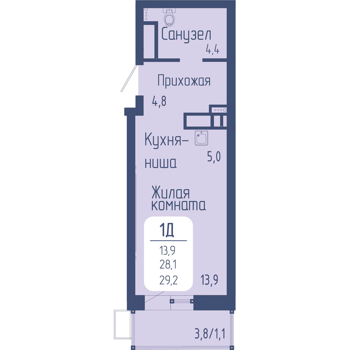 | Студии | от 27 м² до 29 м² | от 5,31 млн ₽ | 44 |