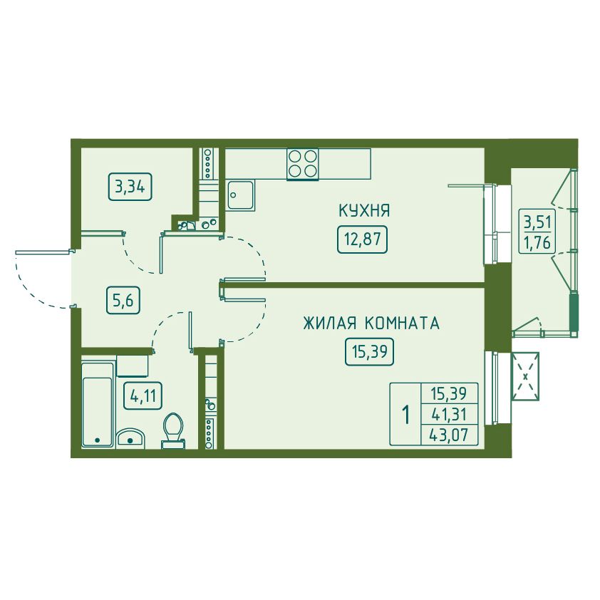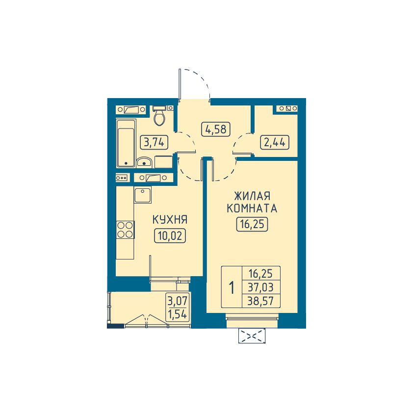 | 1-комн | от 37 м² до 43 м² | от 6,54 млн ₽ | 53 |