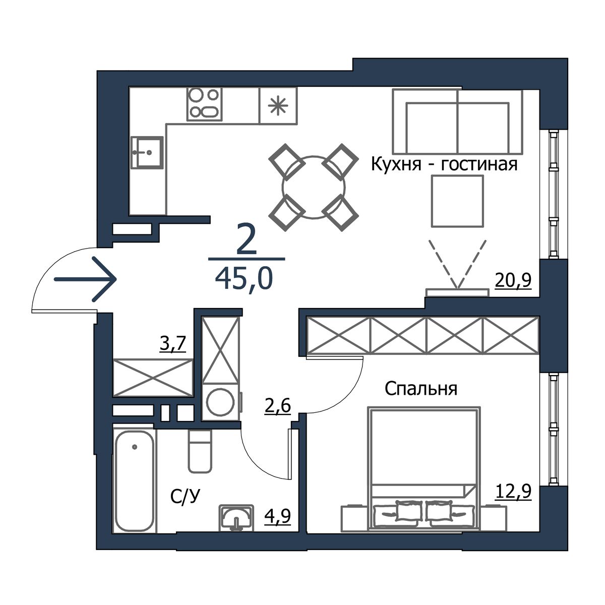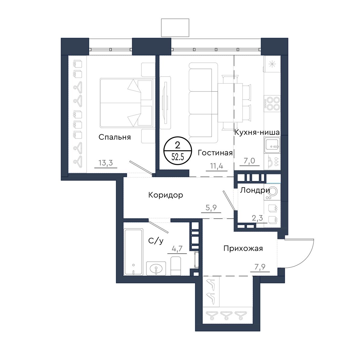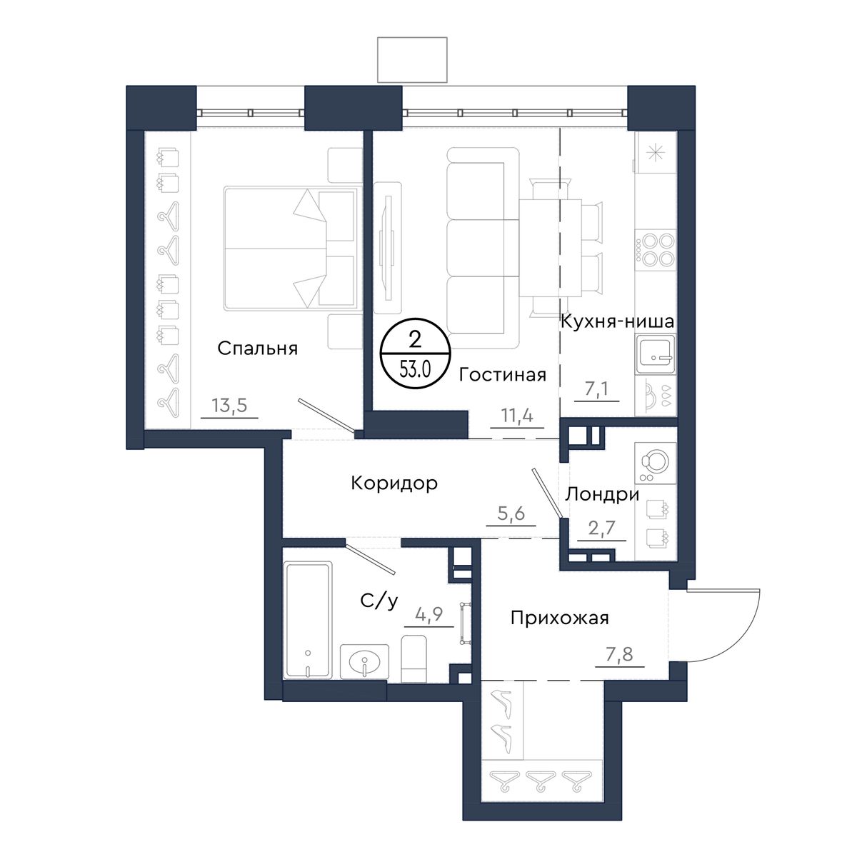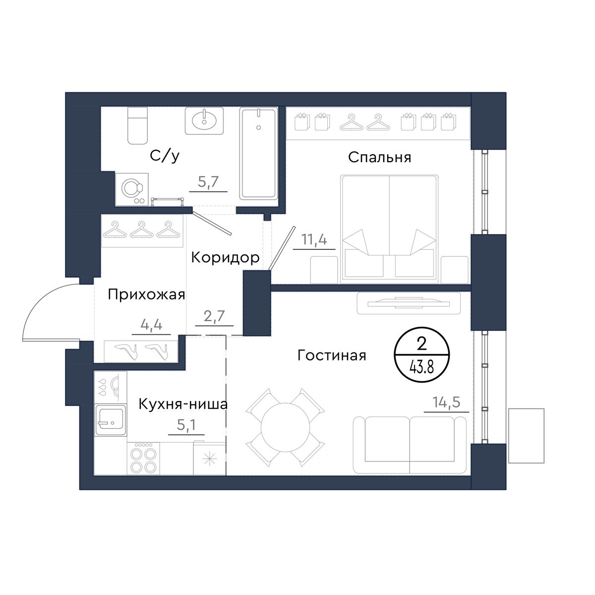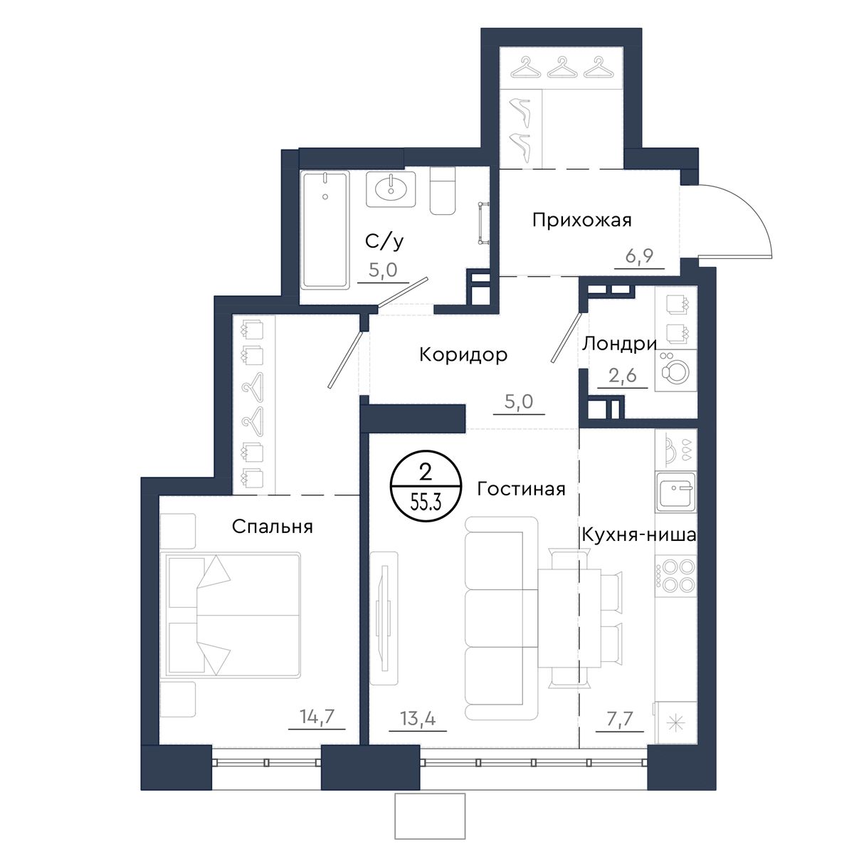 | 2-комн | от 42 м² до 63 м² | от 7,13 млн ₽ | 145 |