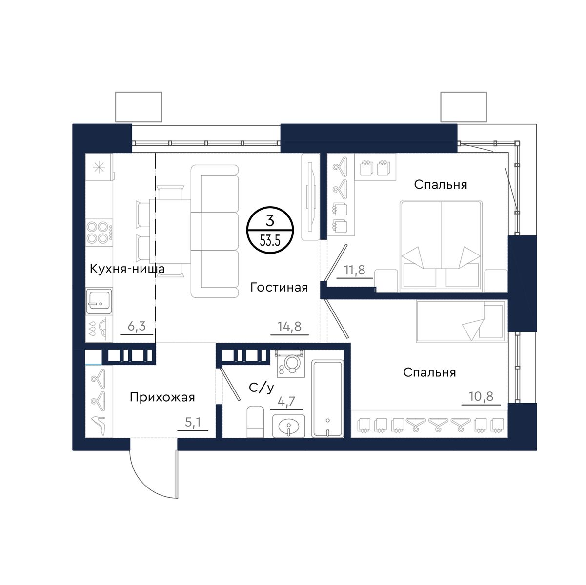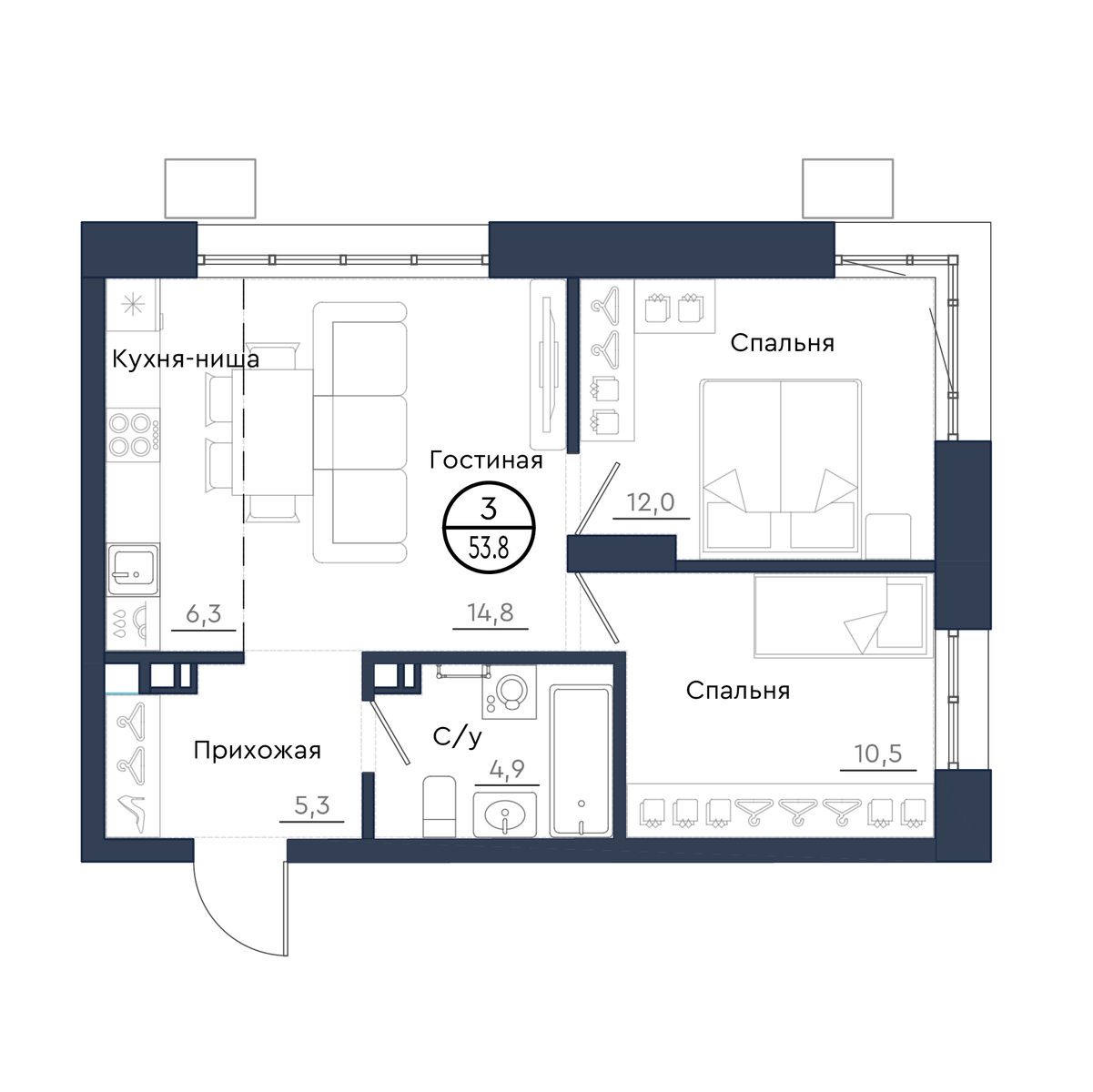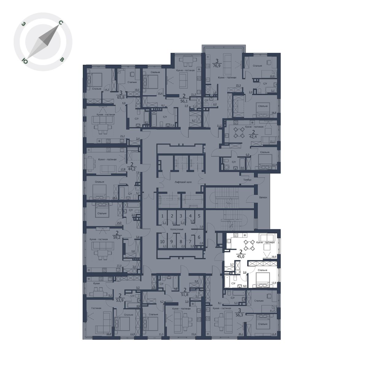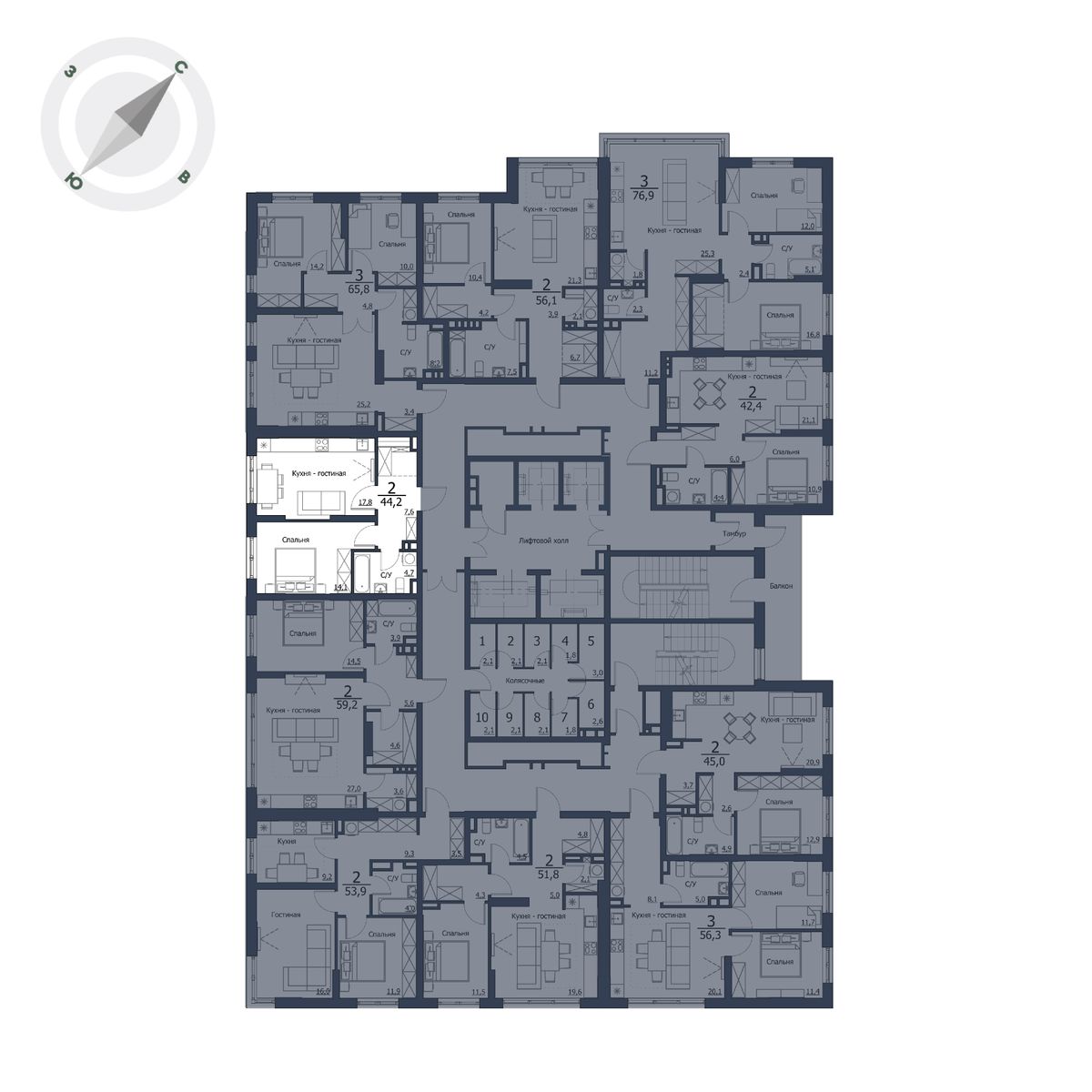 | 3-комн | от 54 м² до 77 м² | от 8,93 млн ₽ | 109 |