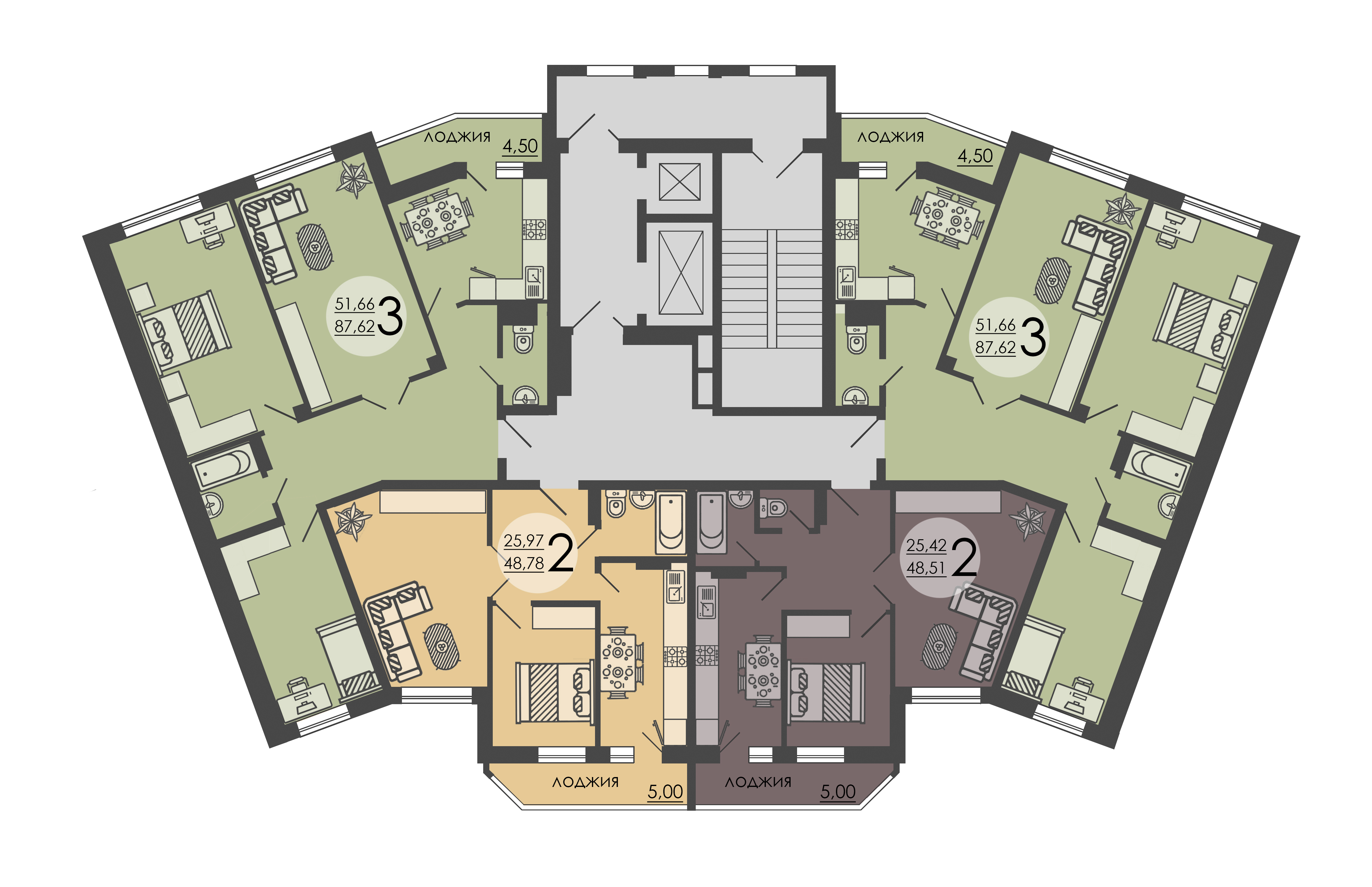 | 2-комн | от 46 м² до 85 м² | от 5,05 млн ₽ | 136 |
