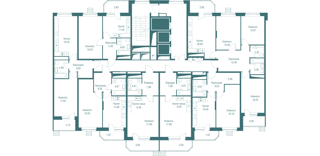 | 2-комн | от 82 м² до 84 м² | от 17,14 млн ₽ | 11 |