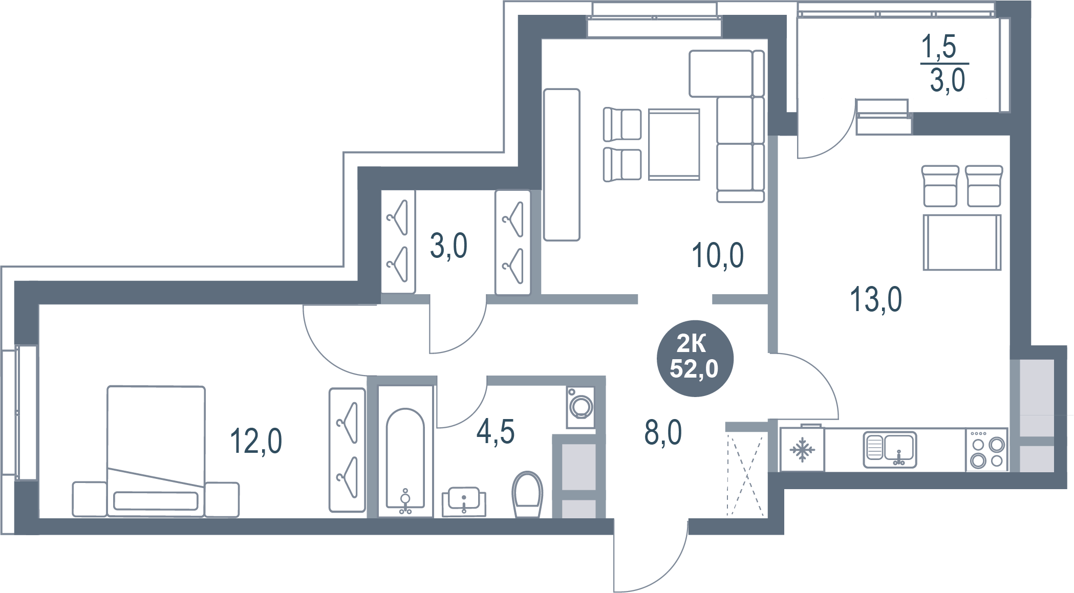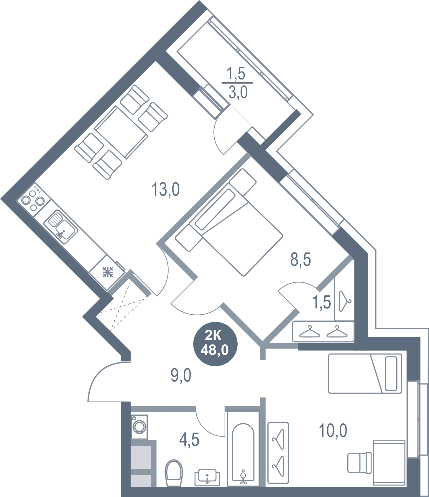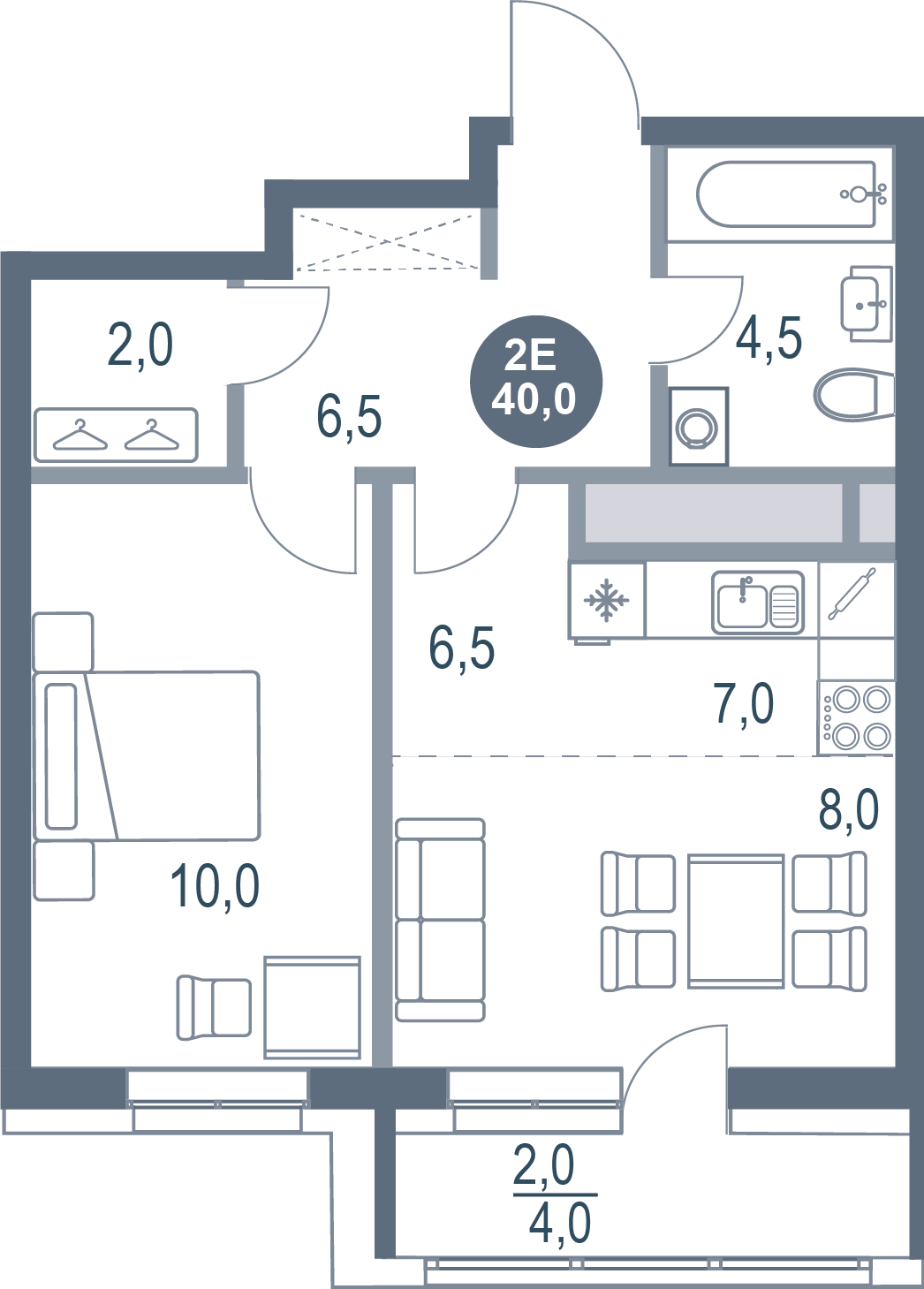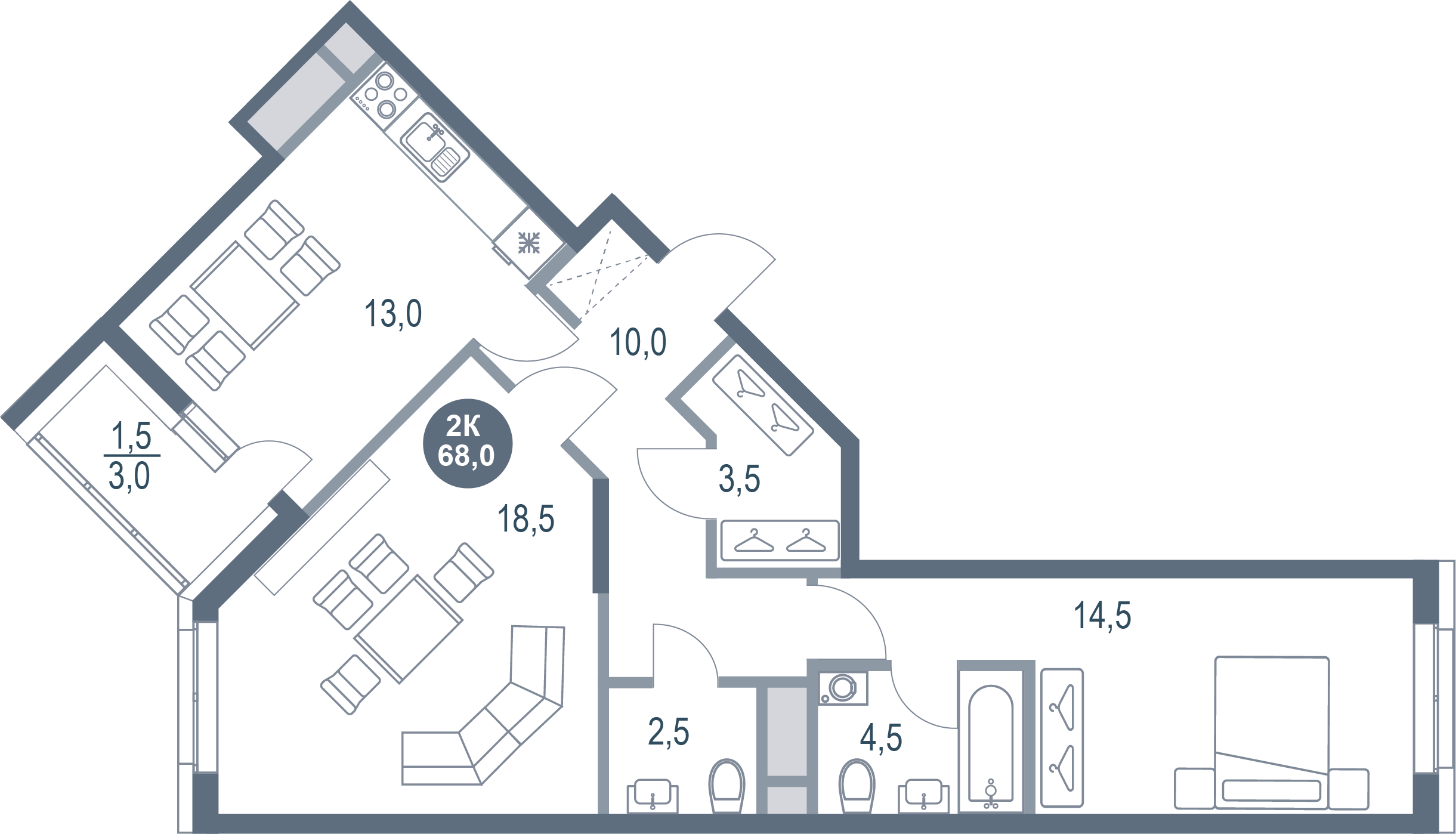 | 2-комн | от 40 м² до 68 м² | от 8,26 млн ₽ | 66 |