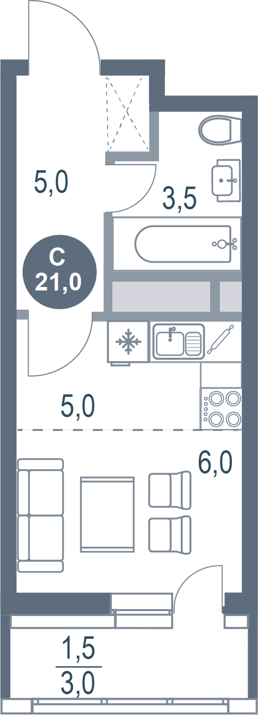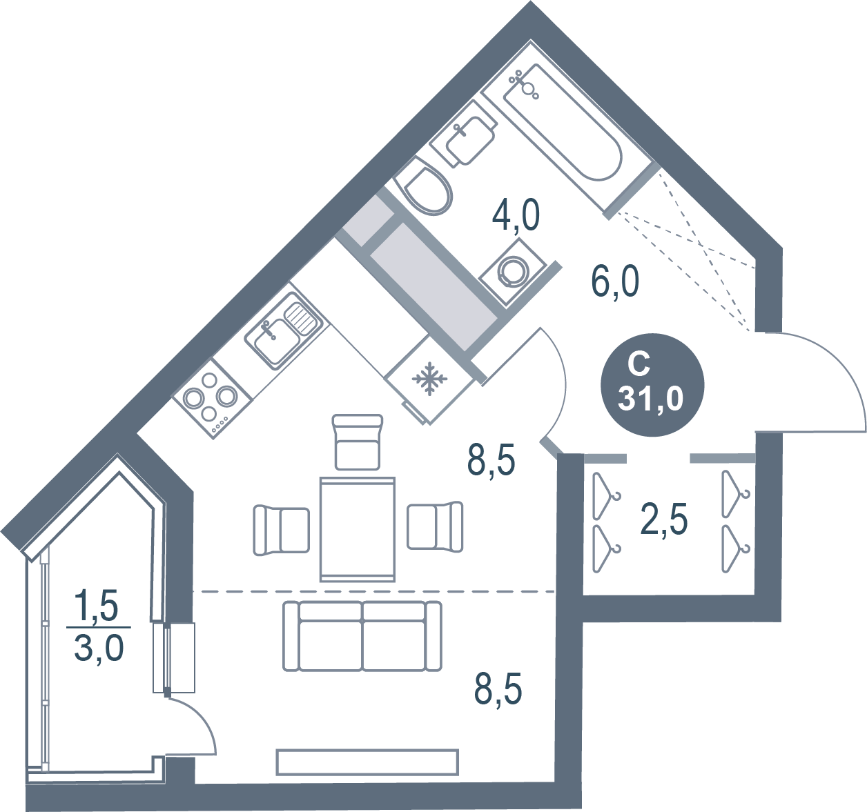 | Студии | от 21 м² до 31 м² | от 5,16 млн ₽ | 105 |