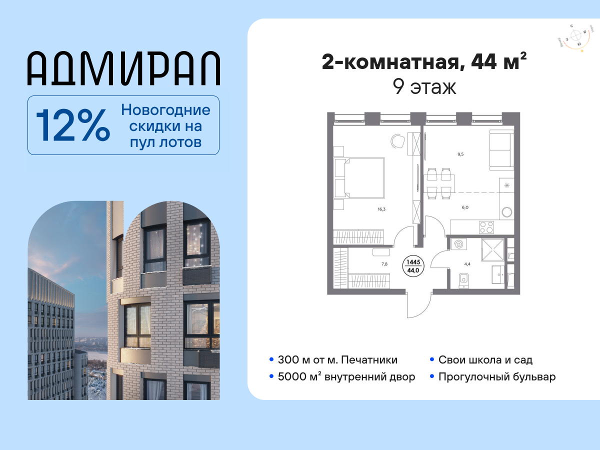 | 2-комн | от 44 м² до 51 м² | от 20,65 млн ₽ | 10 |
