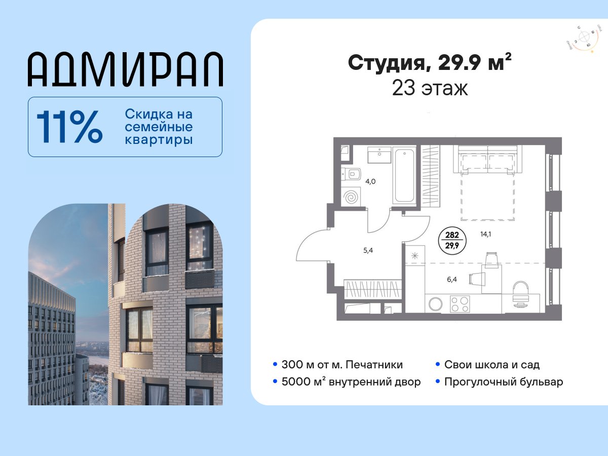 | Студии | от 29 м² до 30 м² | от 17,77 млн ₽ | 2 |
