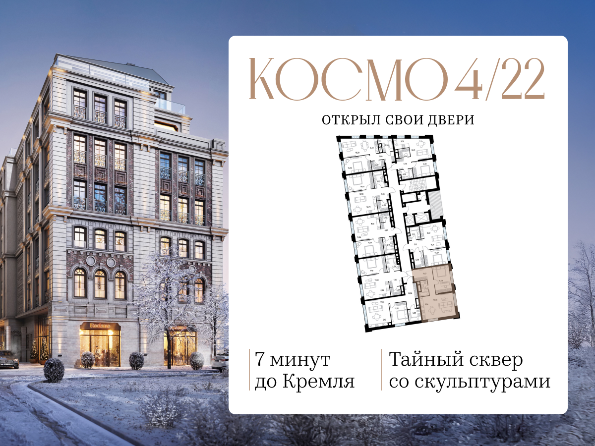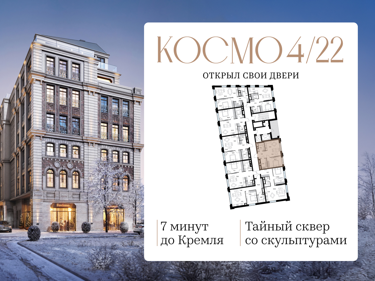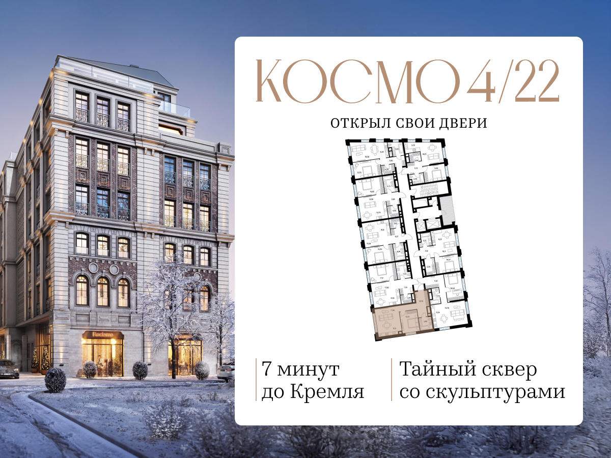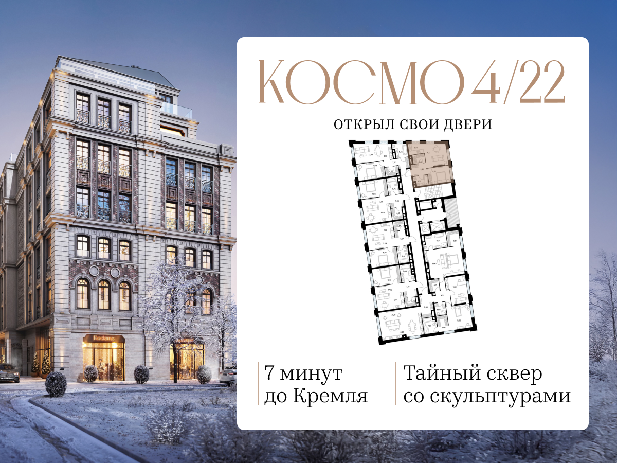 Клубный дом «Космо 4/22» расположен в районе Замоскворечье, на набережной Москвы-реки. Из окон открывается великолепный вид на знаменитую высотку на Котельнической набережной и Кремль. В клубном доме...