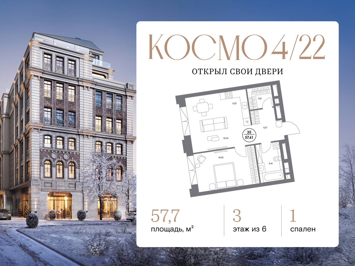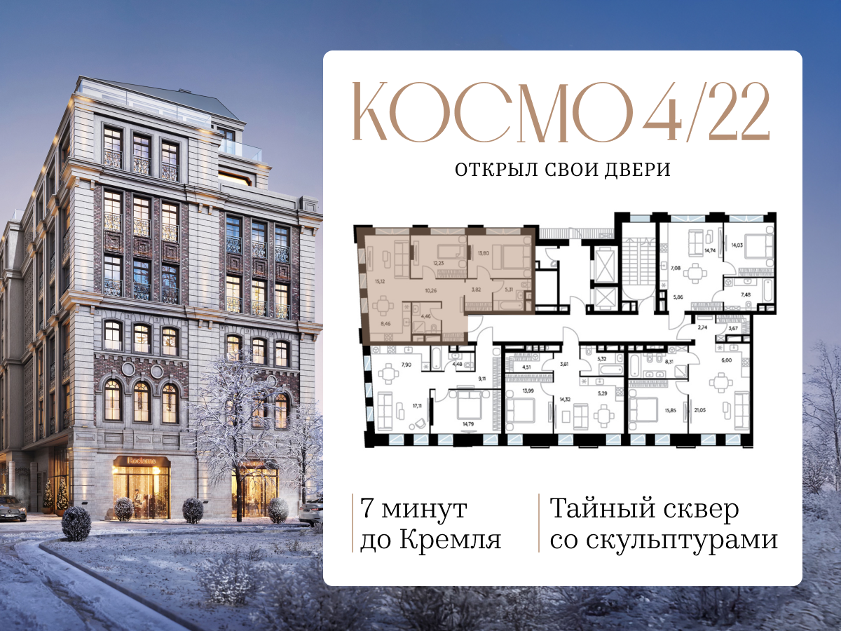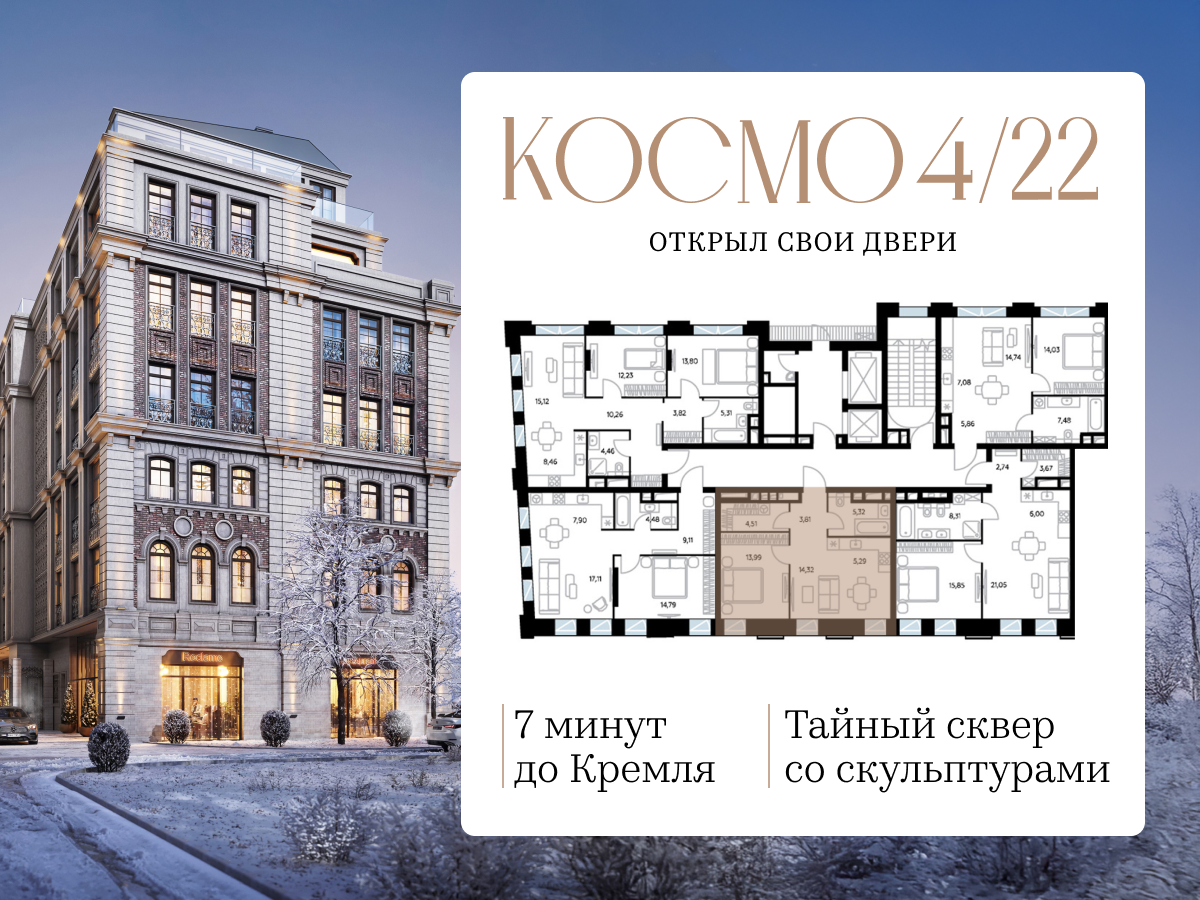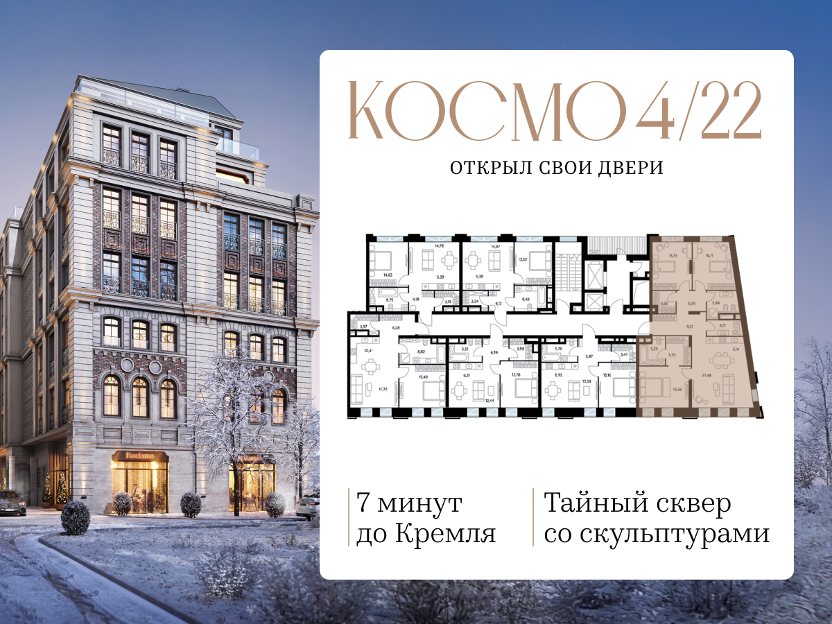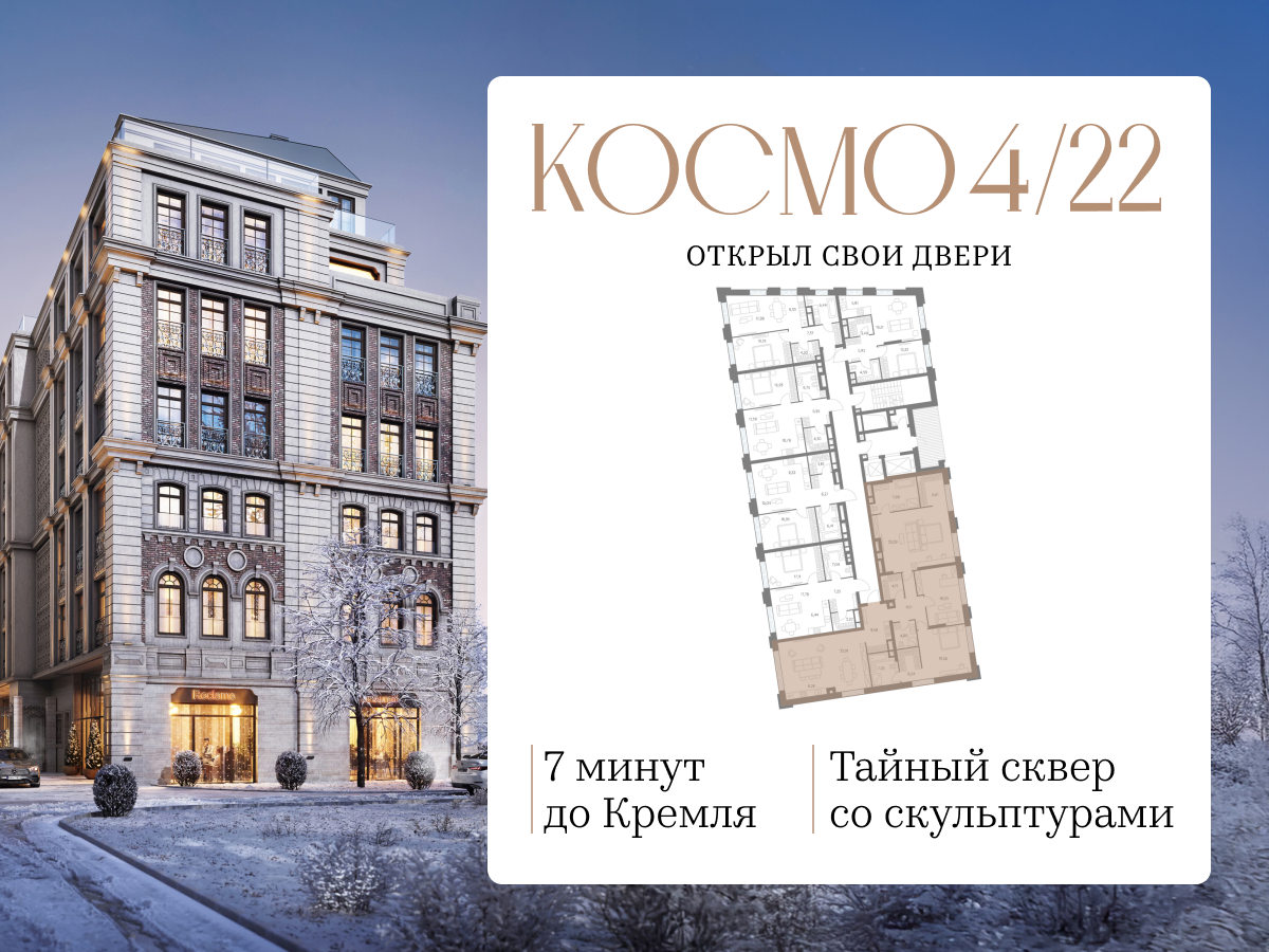 Клубный дом «Космо 4/22» расположен в районе Замоскворечье, на набережной Москвы-реки. Из окон открывается великолепный вид на знаменитую высотку на Котельнической набережной и Кремль. В клубном доме...