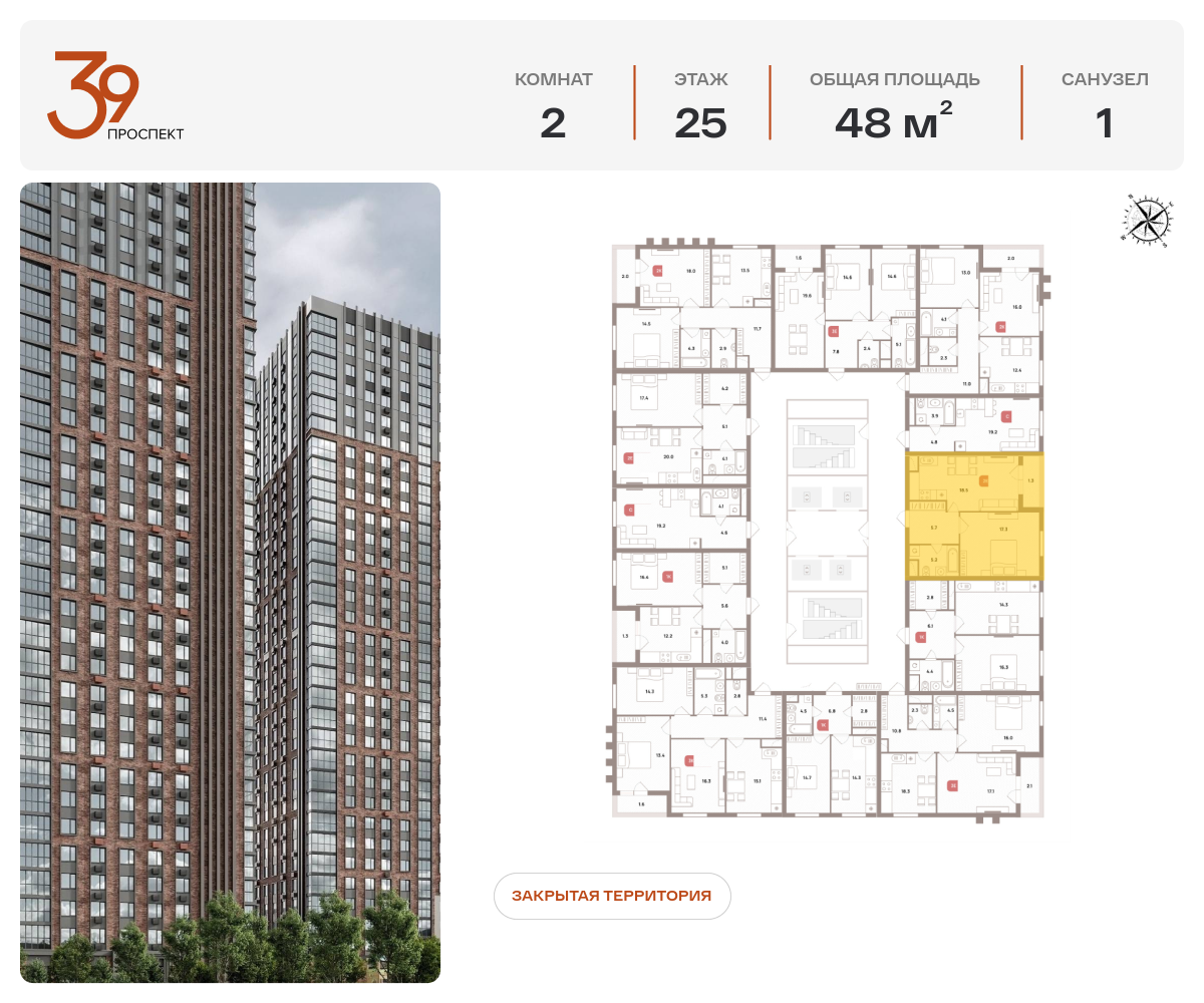 | 2-комн | от 48 м² до 68 м² | от 20,05 млн ₽ | 48 |