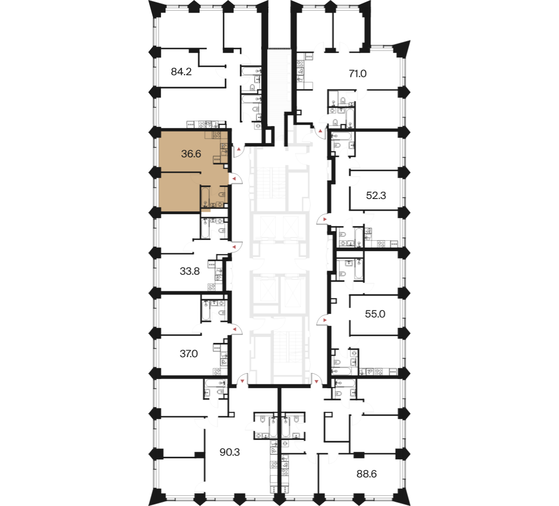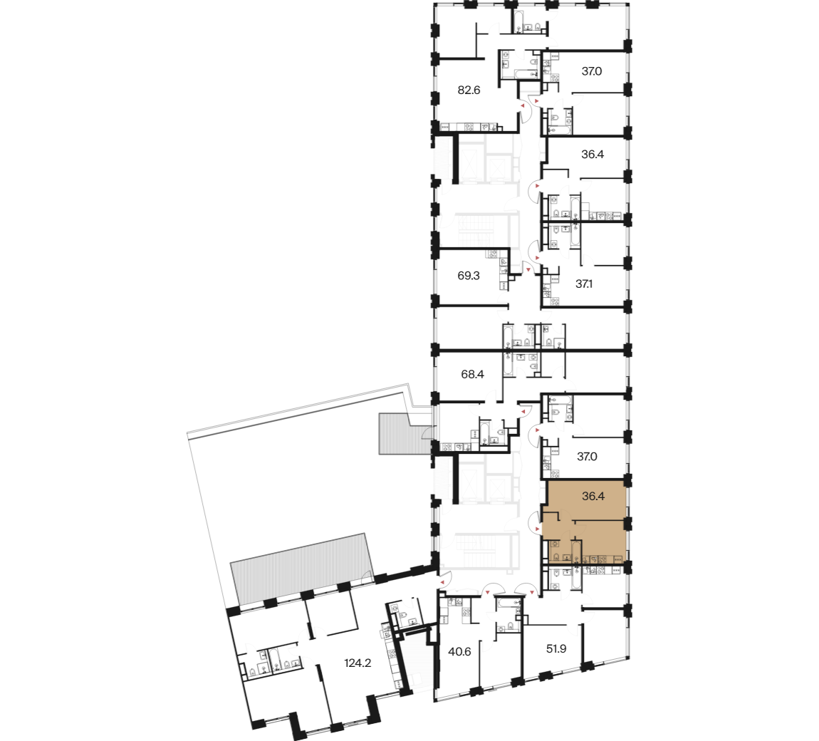 | 1-комн | от 29 м² до 42 м² | от 19,22 млн ₽ | 37 |