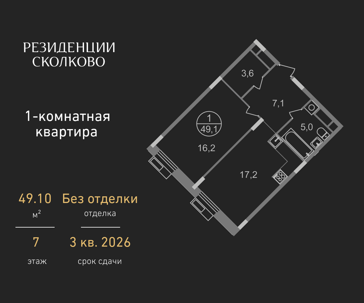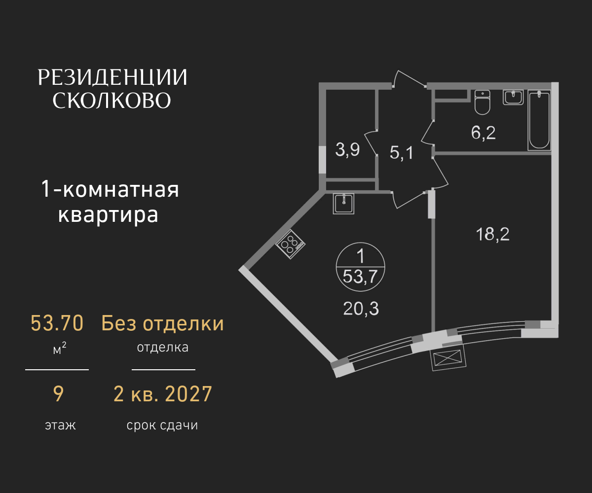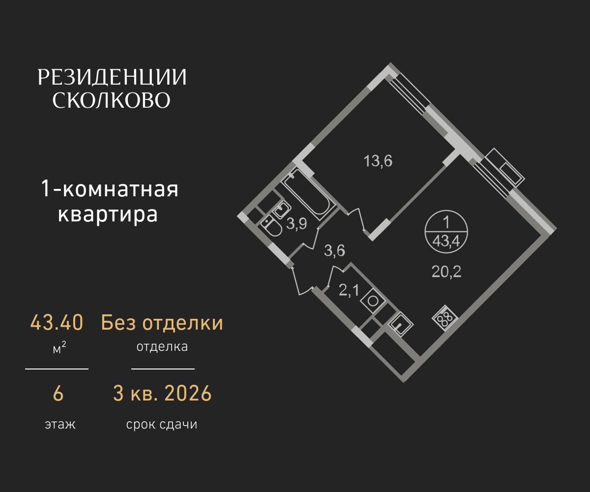 | 1-комн | от 43 м² до 54 м² | от 18,53 млн ₽ | 19 |