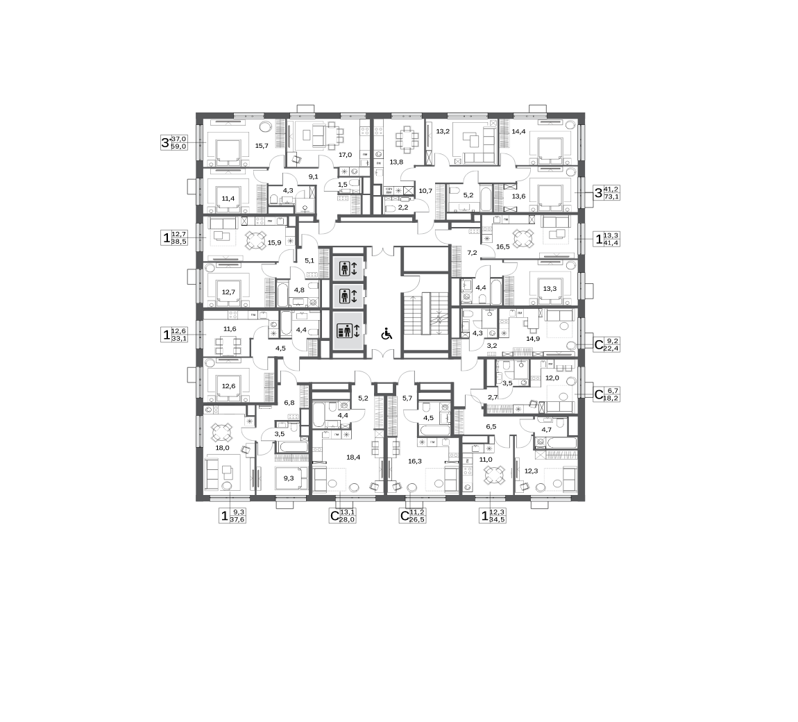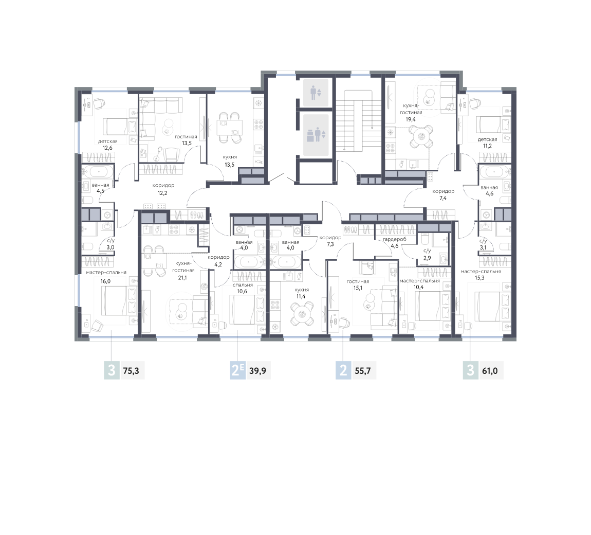 | 4-комн | от 81 м² до 97 м² | от 31,24 млн ₽ | 19 |
