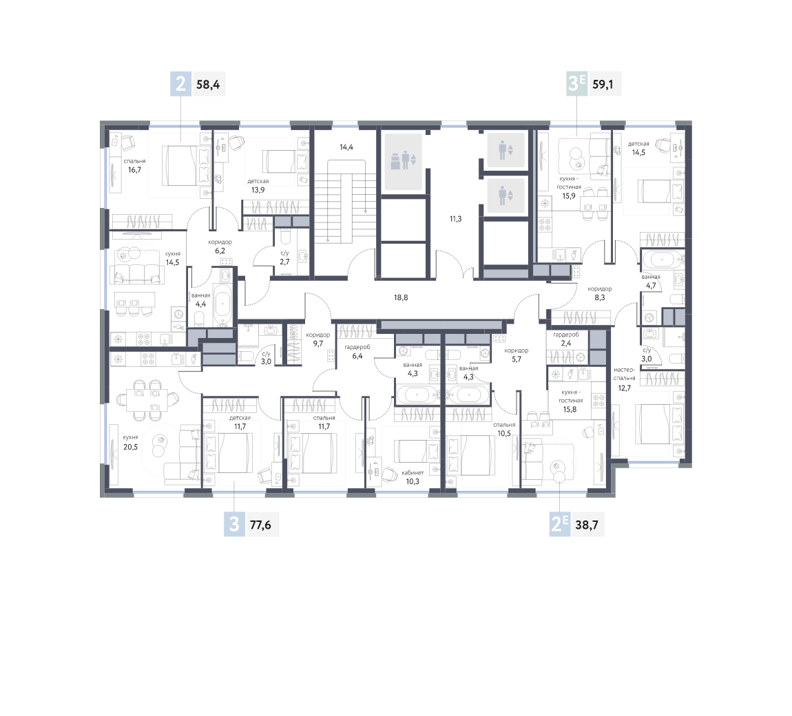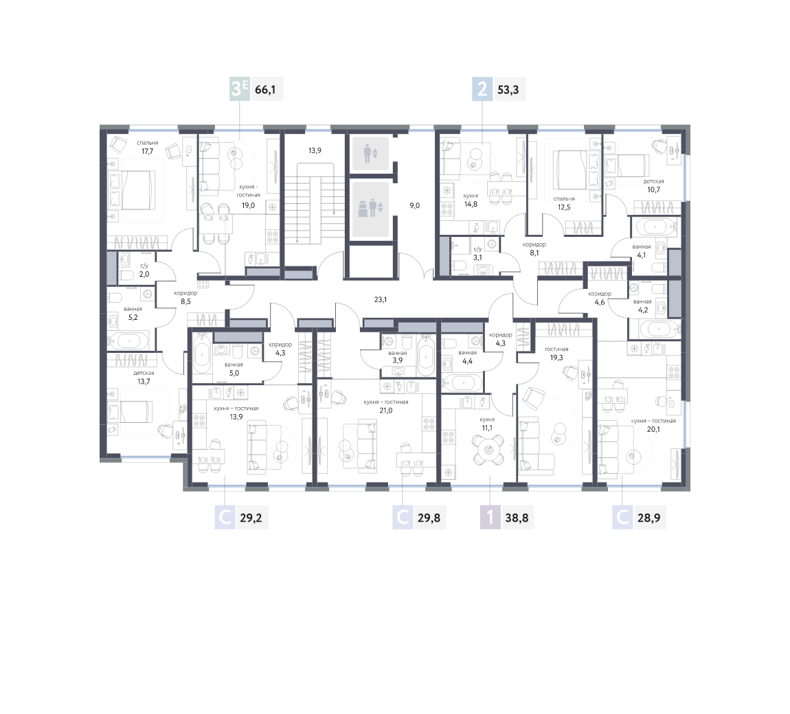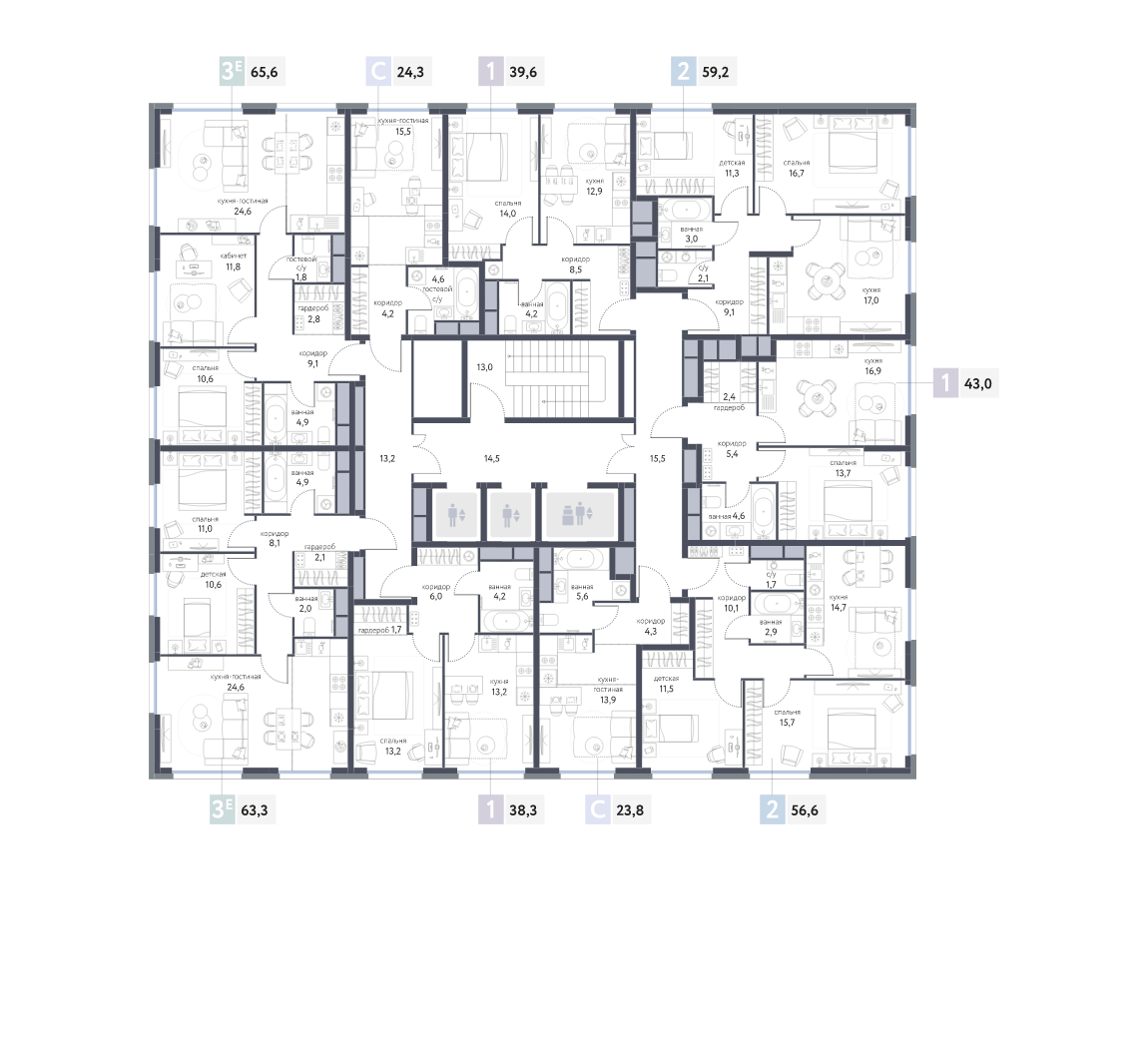 | 2-комн | от 39 м² до 66 м² | от 18,07 млн ₽ | 105 |