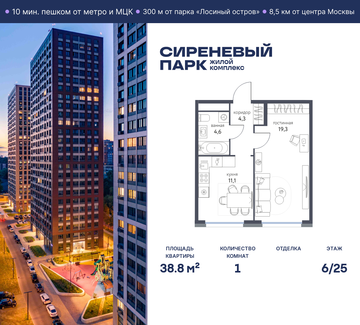 Жилой комплекс «Сиреневый парк» - это больше чем комфорт. 3-я очередь – готовые квартиры с ключами. Дома сданы. 4-я очередь – сдача в 1-ом кв. 2026 г. Великолепная транспортная доступность ЖК: 10...
