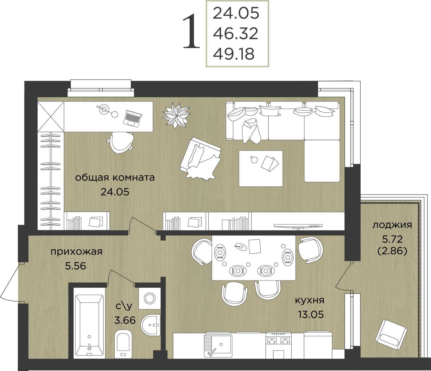 | 1-комн | от 41 м² до 52 м² | от 6,70 млн ₽ | 84 |