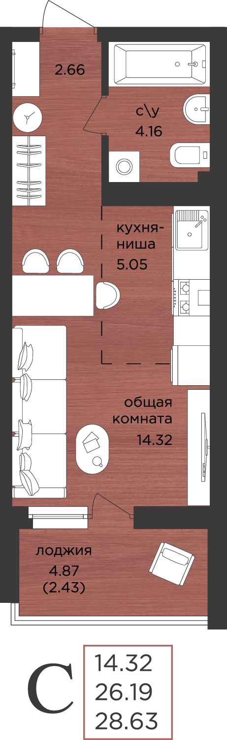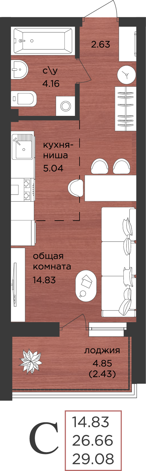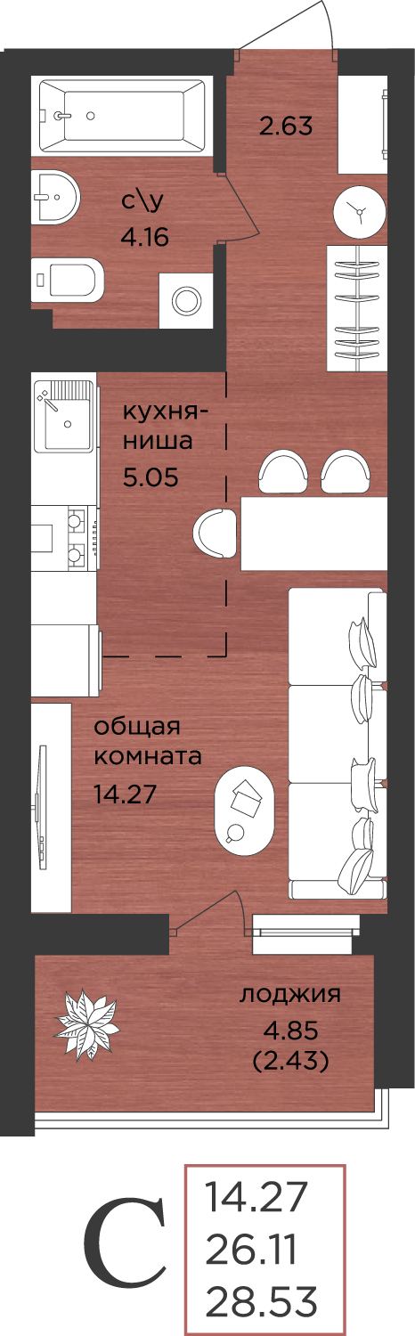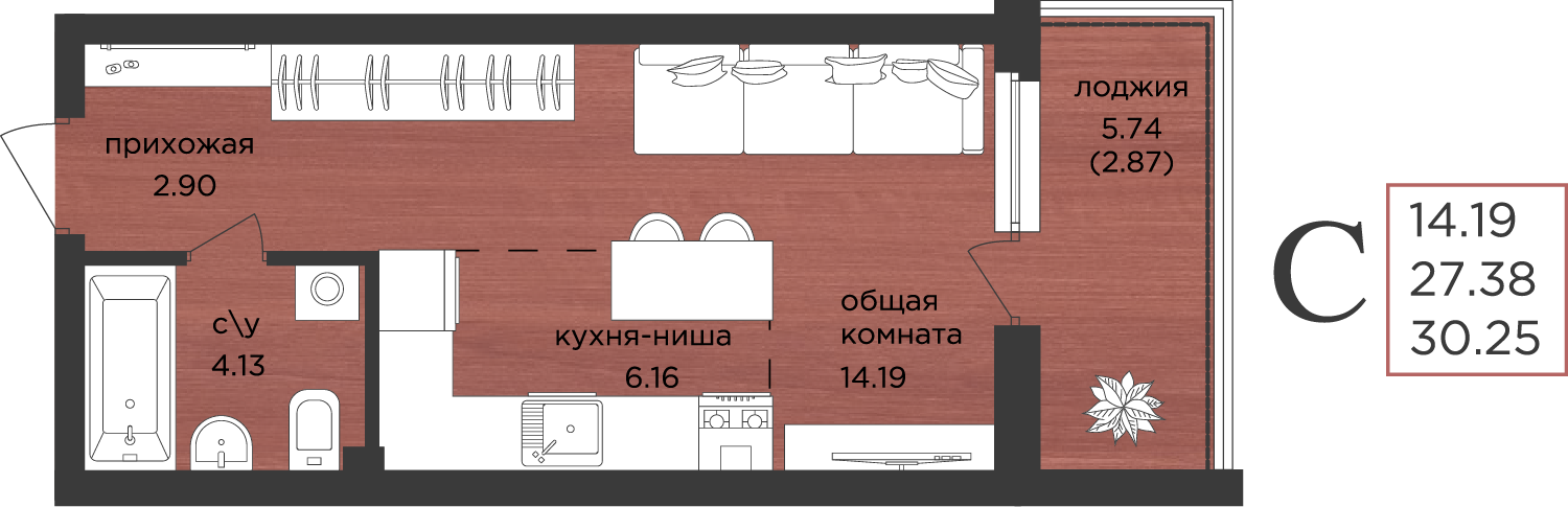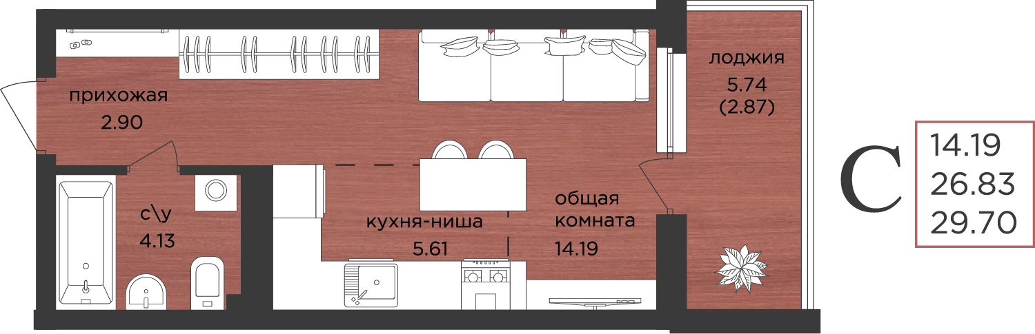 | Студии | от 29 м² до 30 м² | от 5,30 млн ₽ | 88 |