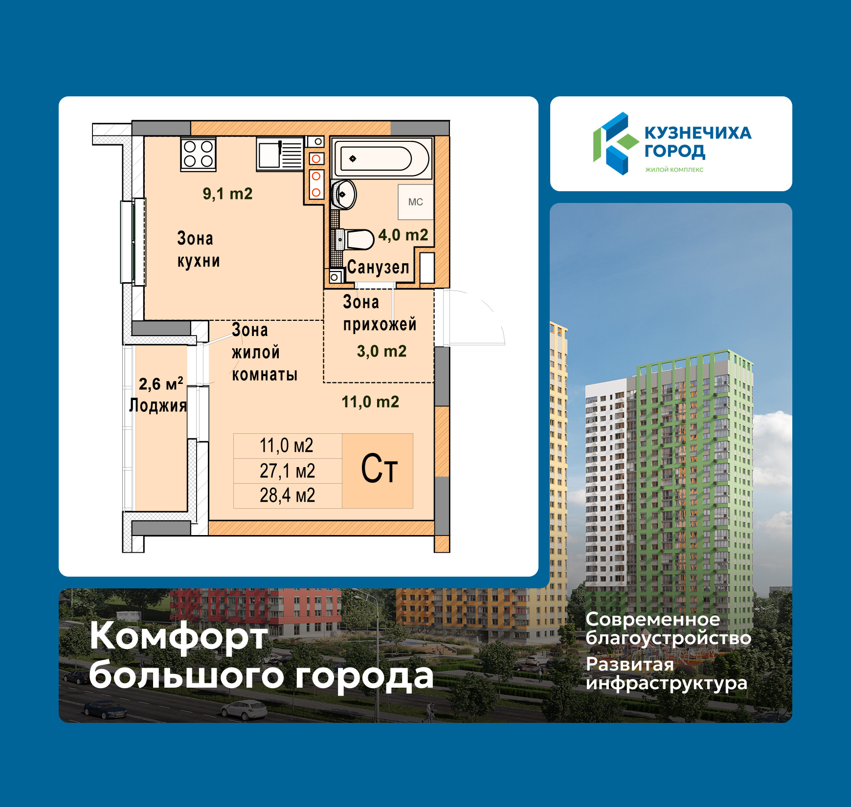 | 1-комн | от 23 м² до 50 м² | от 5,79 млн ₽ | 504 |