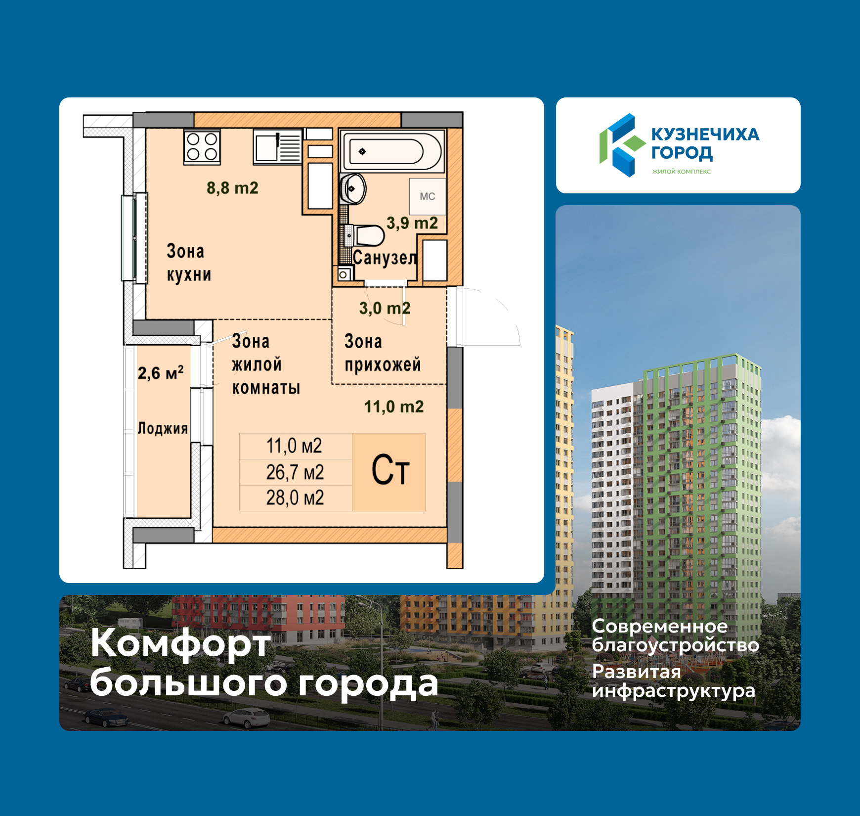 | 2-комн | от 42 м² до 66 м² | от 8,97 млн ₽ | 386 |
