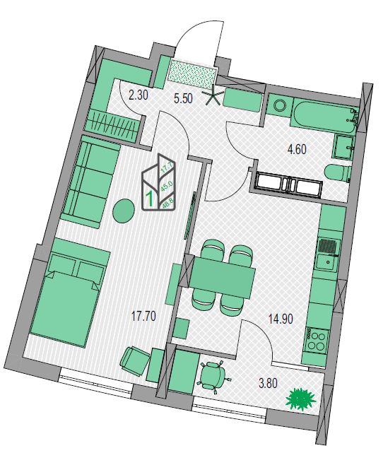 | 1-комн | от 49 м² до 62 м² | от 10,59 млн ₽ | 6 |