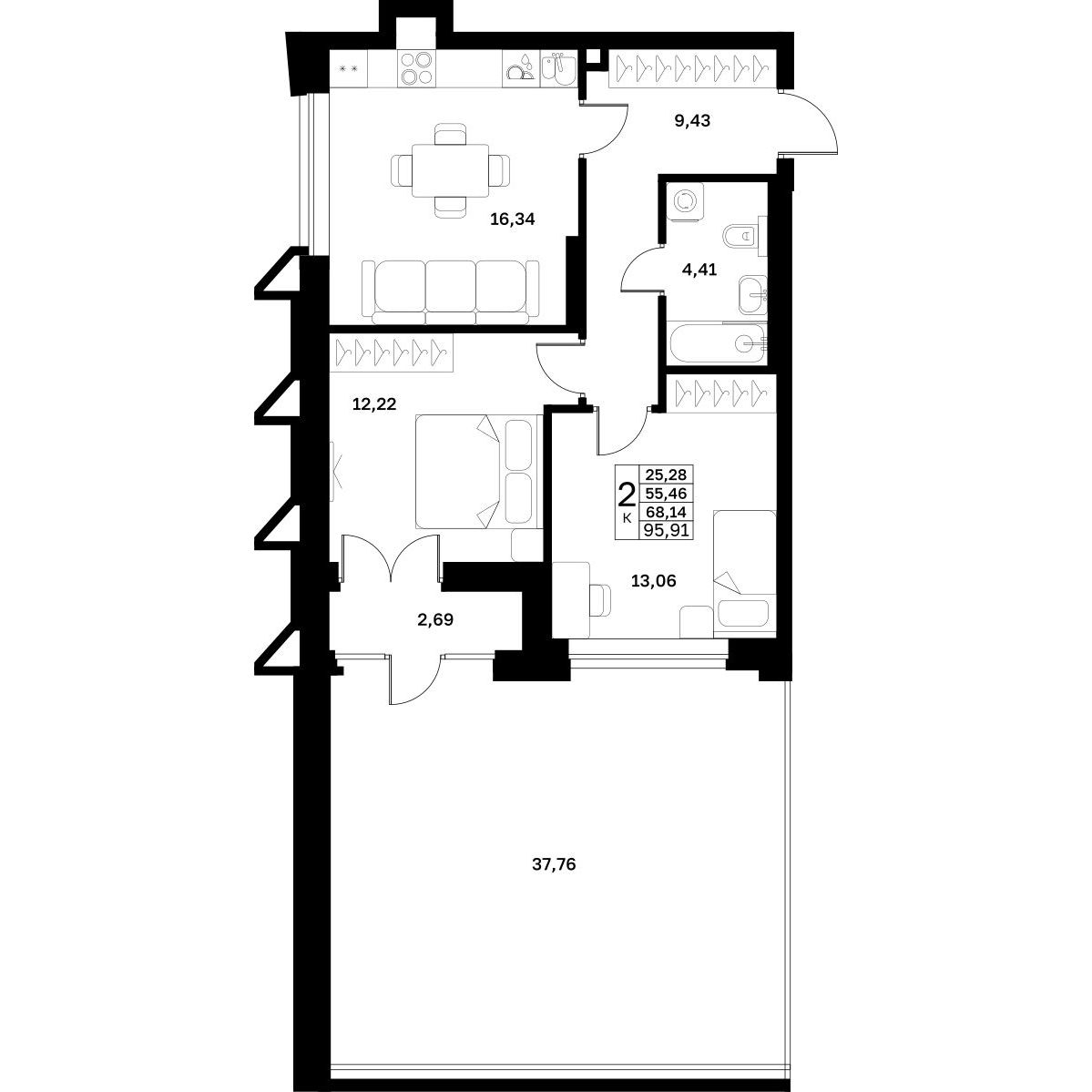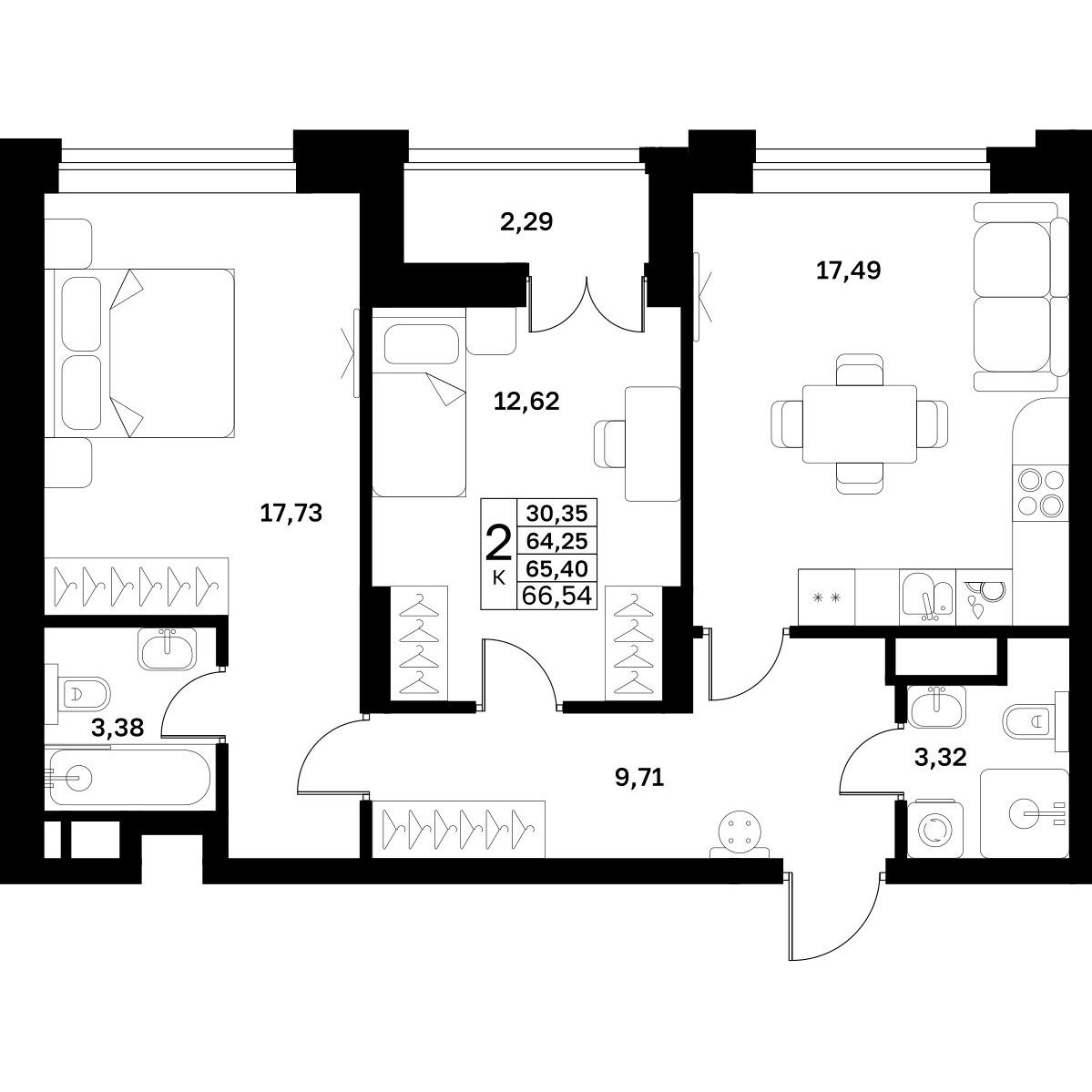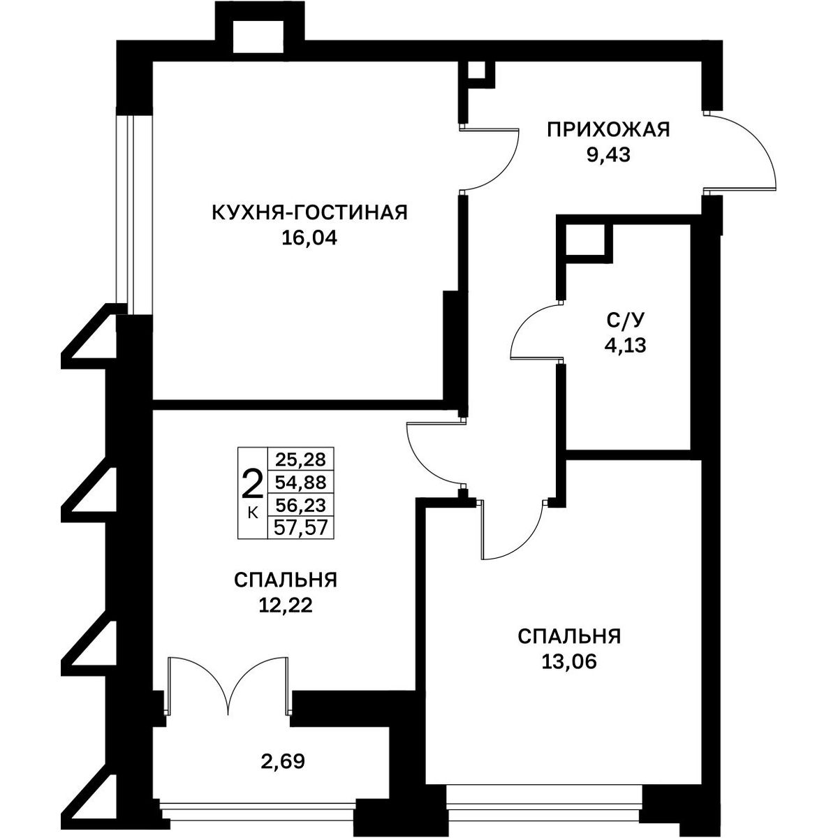 | 2-комн | от 56 м² до 68 м² | от 11,65 млн ₽ | 9 |