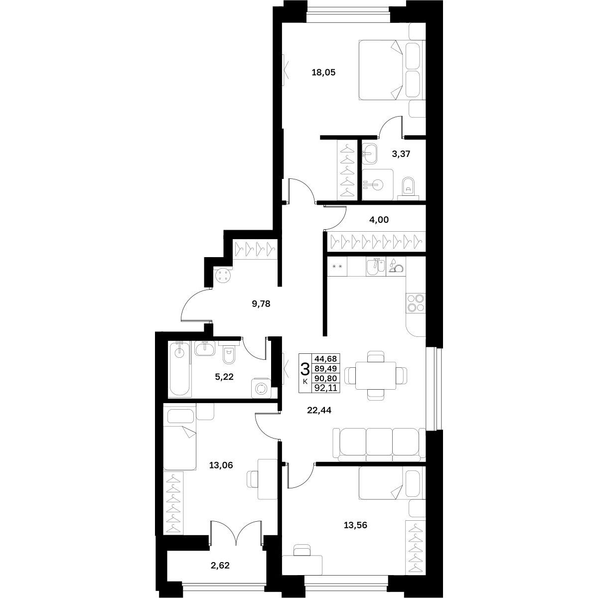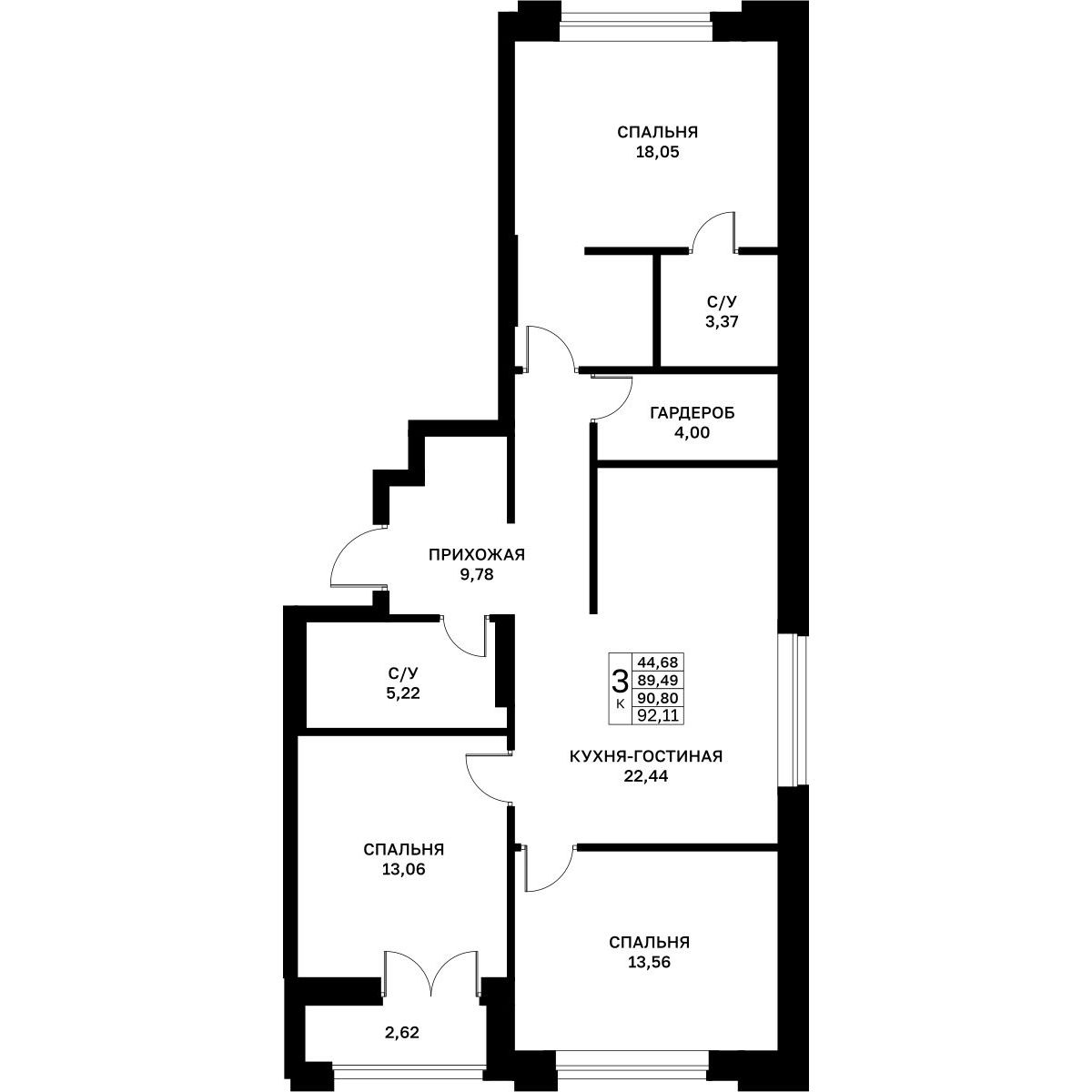 | 3-комн | от 90 м² до 91 м² | от 16,01 млн ₽ | 5 |