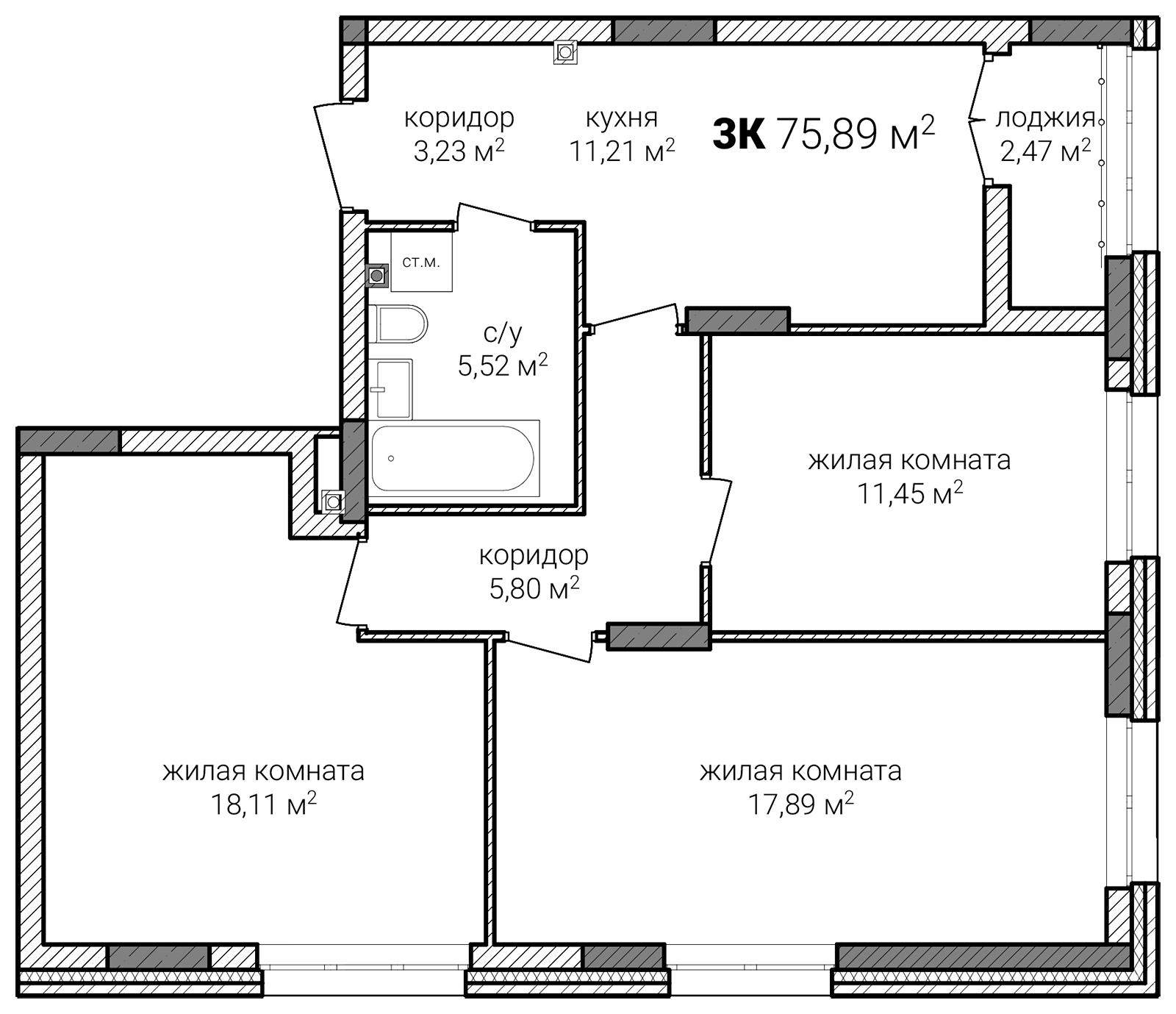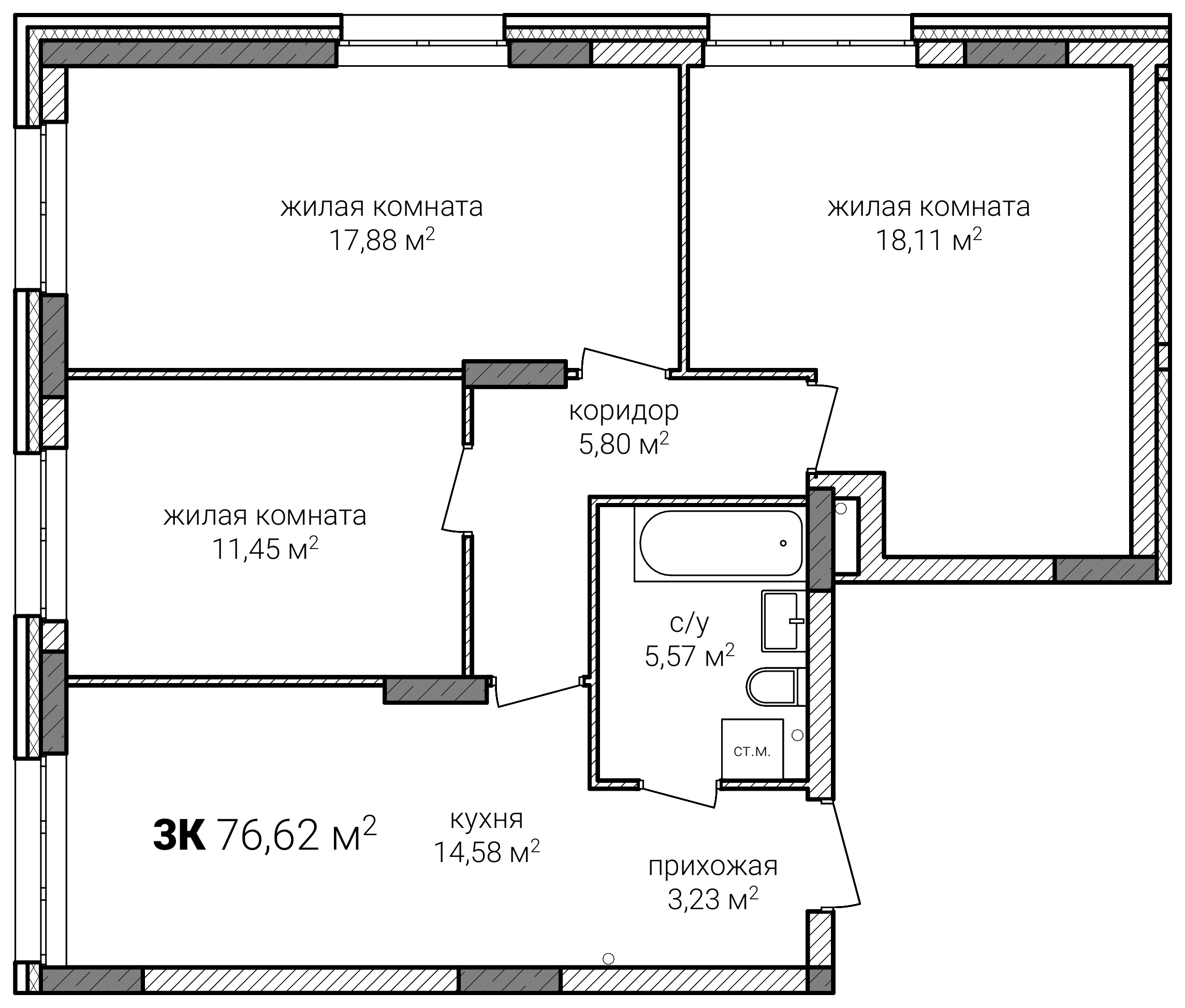 | 3-комн | от 73 м² до 77 м² | от 11,40 млн ₽ | 6 |