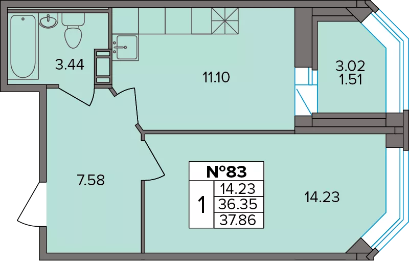 | 1-комн | от 32 м² до 42 м² | от 8,05 млн ₽ | 26 |