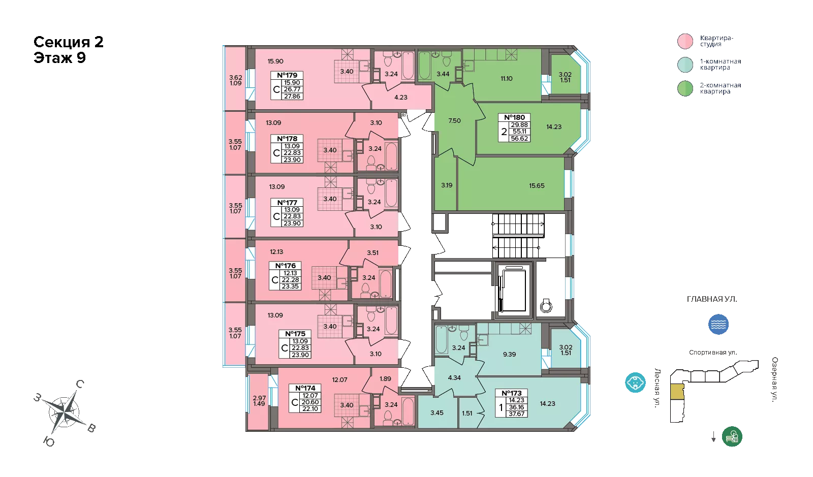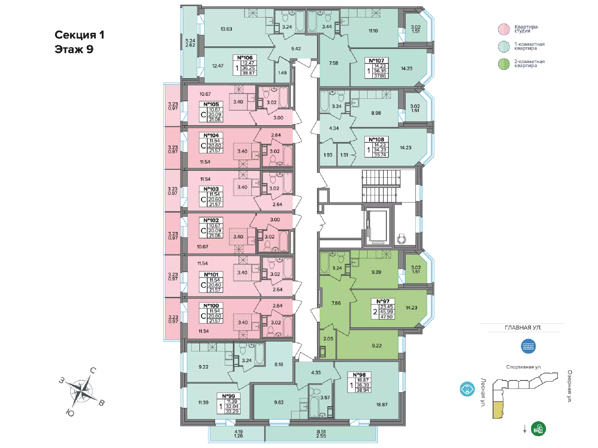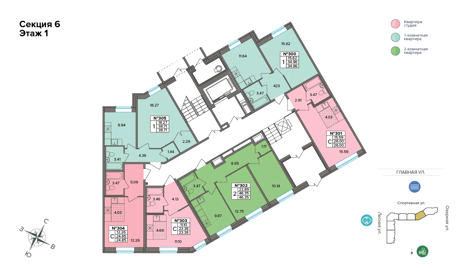 | Студии | от 24 м² до 26 м² | от 6,02 млн ₽ | 2 |