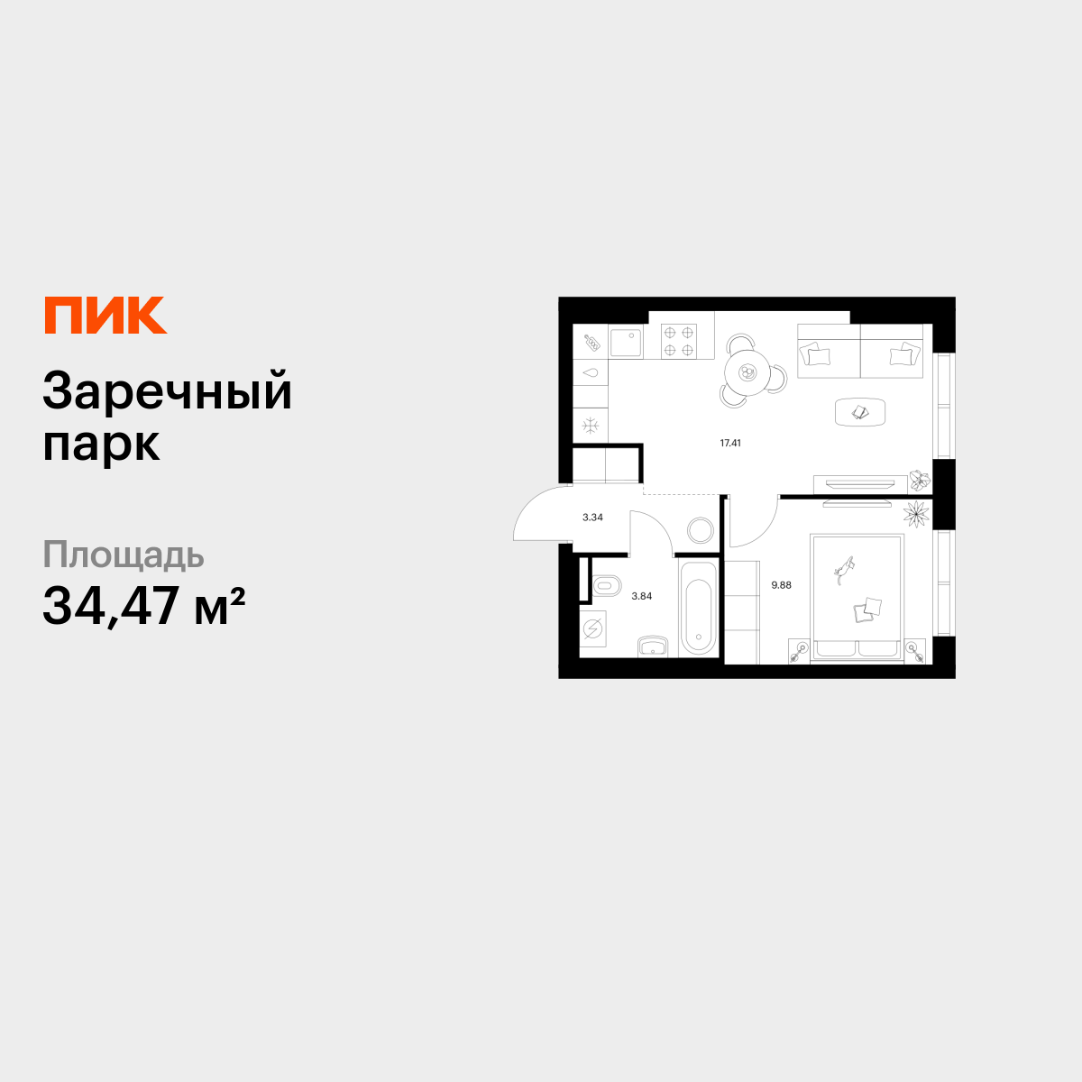 | 1-комн | от 32 м² до 39 м² | от 5,96 млн ₽ | 44 |