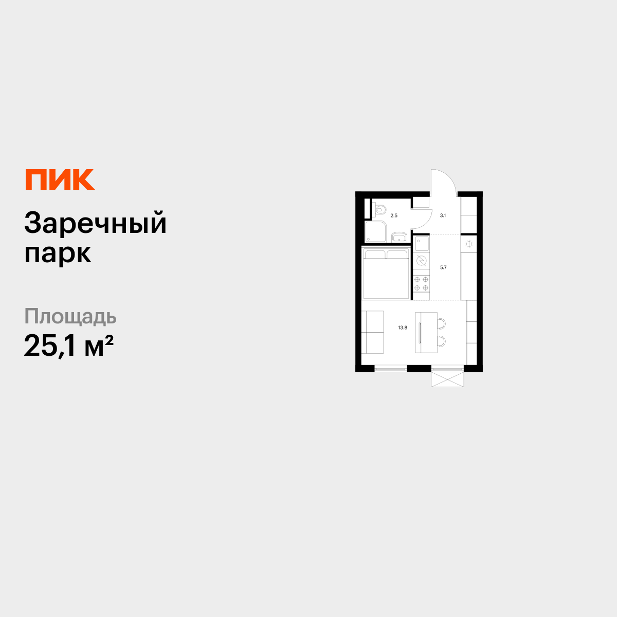 | Студии | от 25 м² до 25 м² | от 4,82 млн ₽ | 9 |