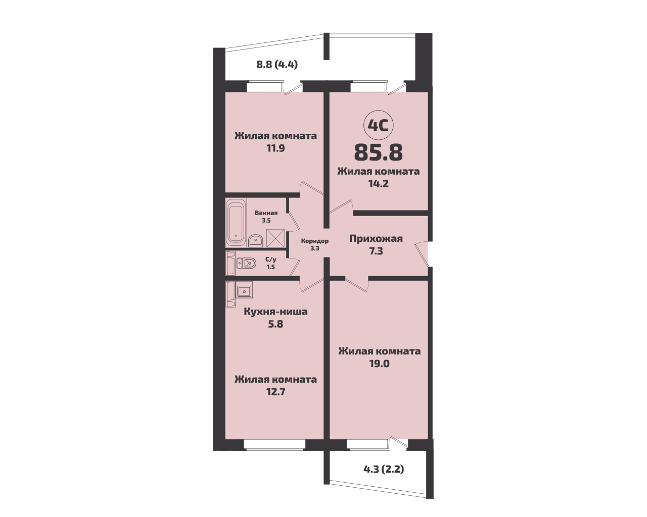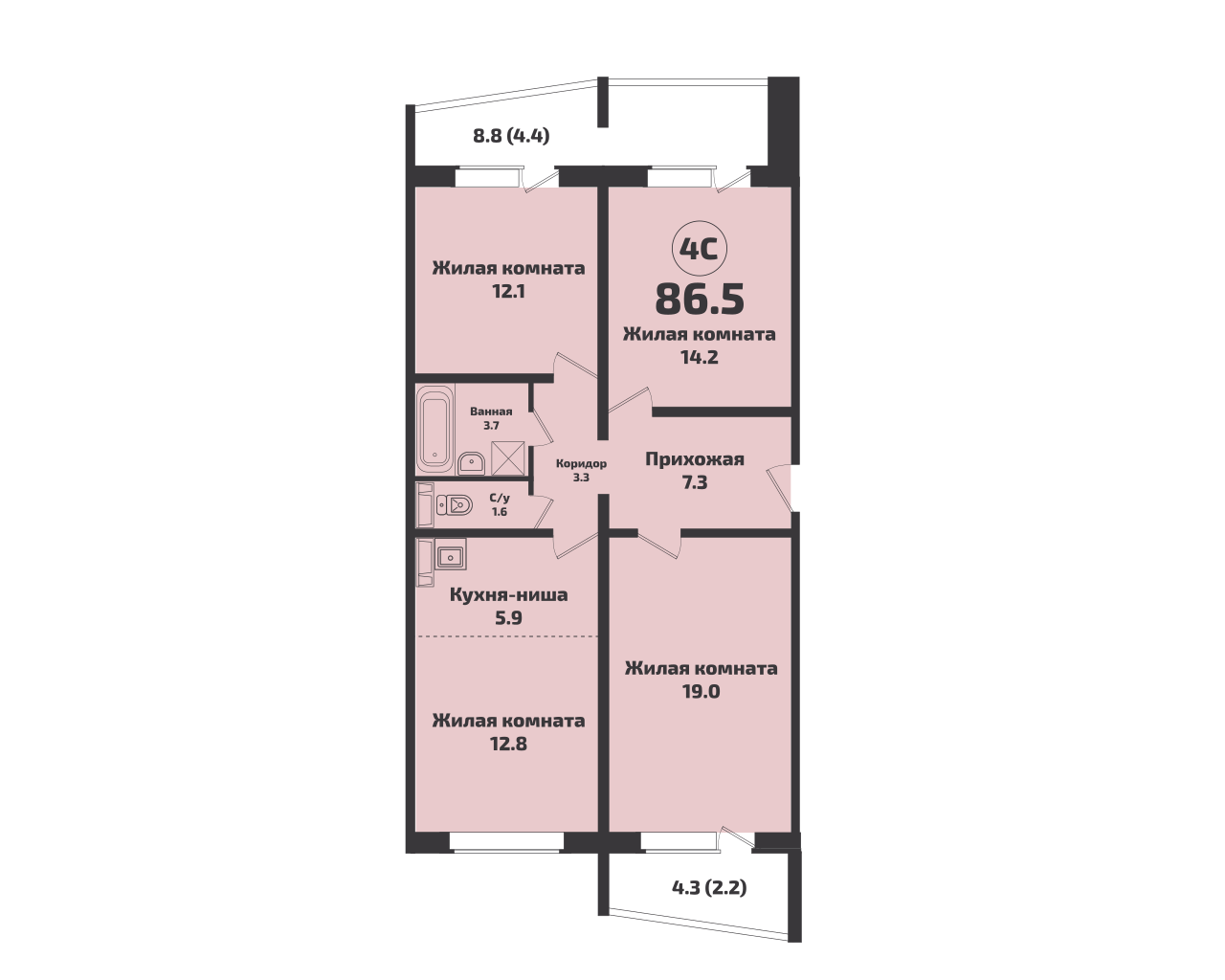 | 4-комн | от 86 м² до 87 м² | от 9,90 млн ₽ | 2 |