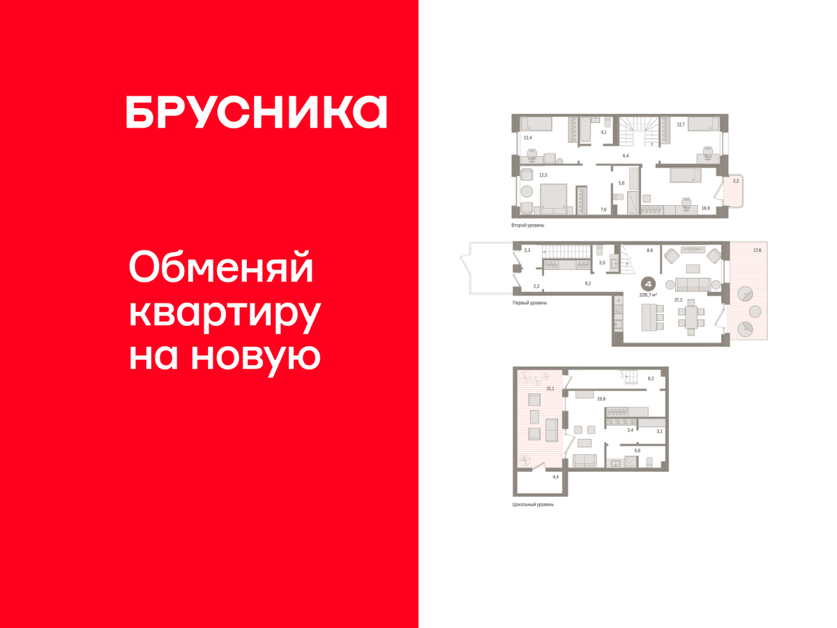 | 4-комн | от 227 м² до 294 м² | от 31,69 млн ₽ | 2 |