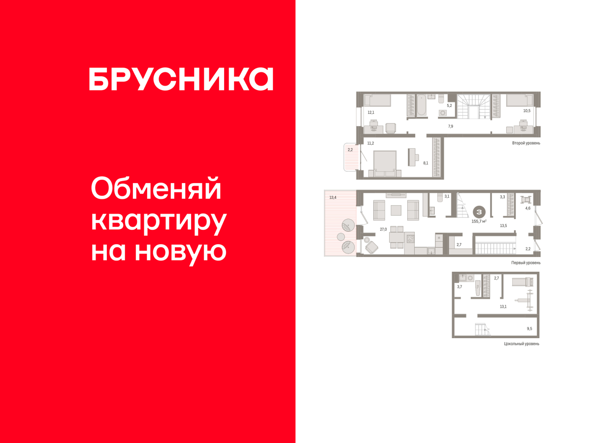 | 3-комн | от 148 м² до 270 м² | от 22,82 млн ₽ | 8 |