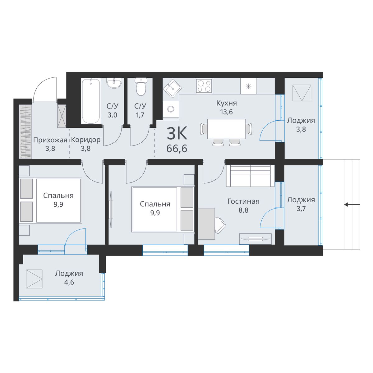 | 3-комн | от 61 м² | от 7,64 млн ₽ | 7 |