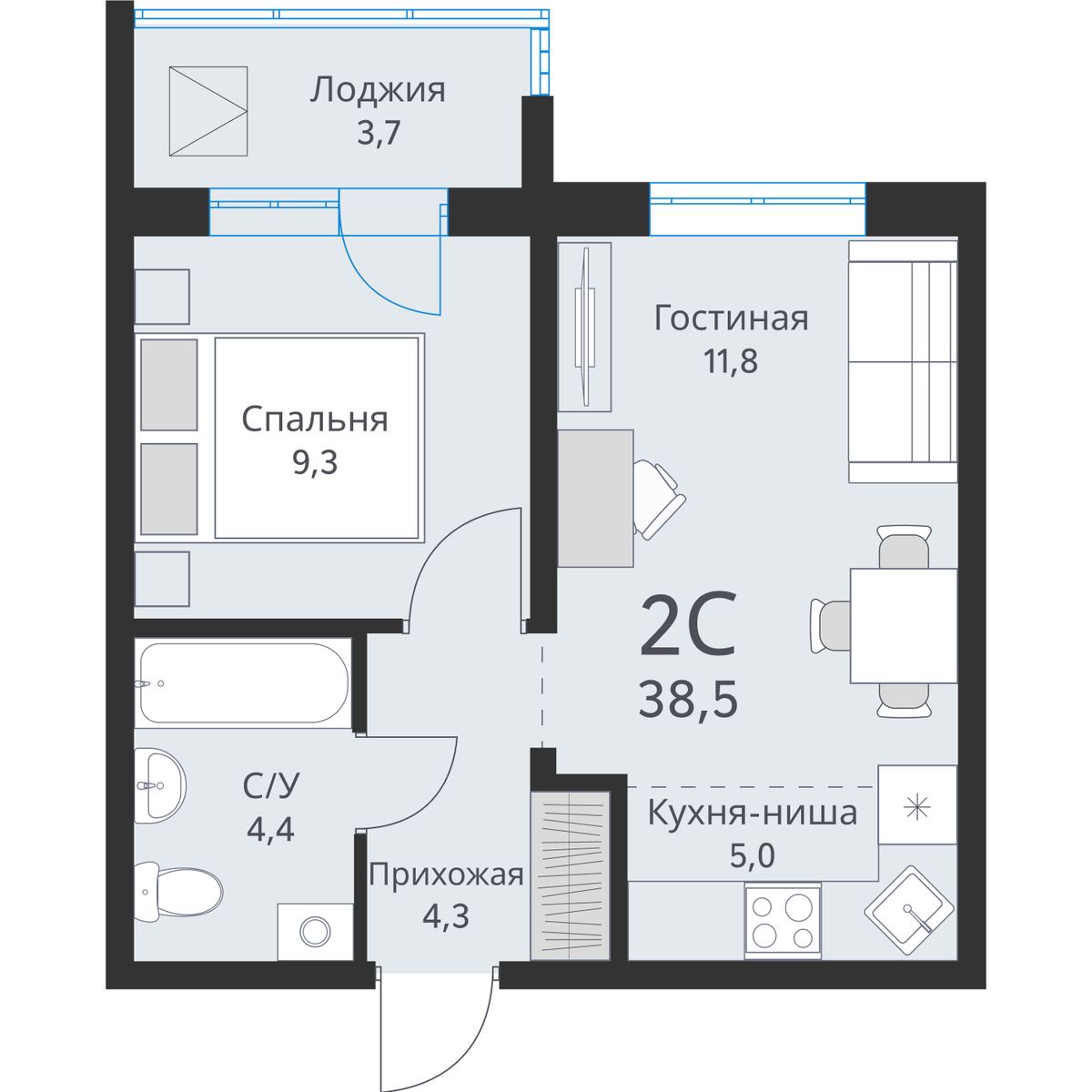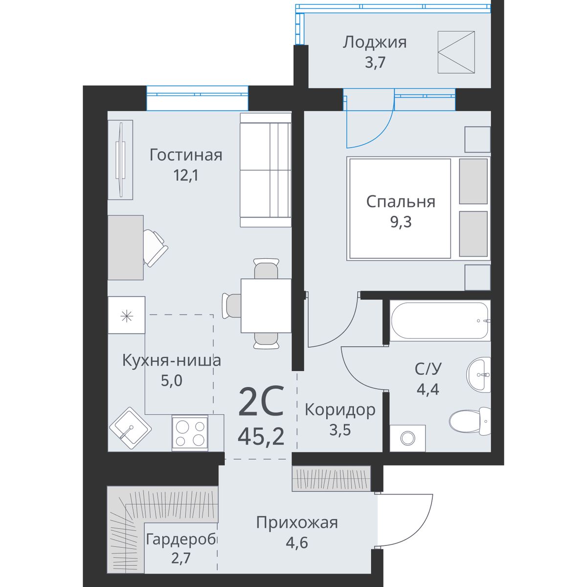 | 2-комн | от 37 м² до 61 м² | от 5,12 млн ₽ | 9 |