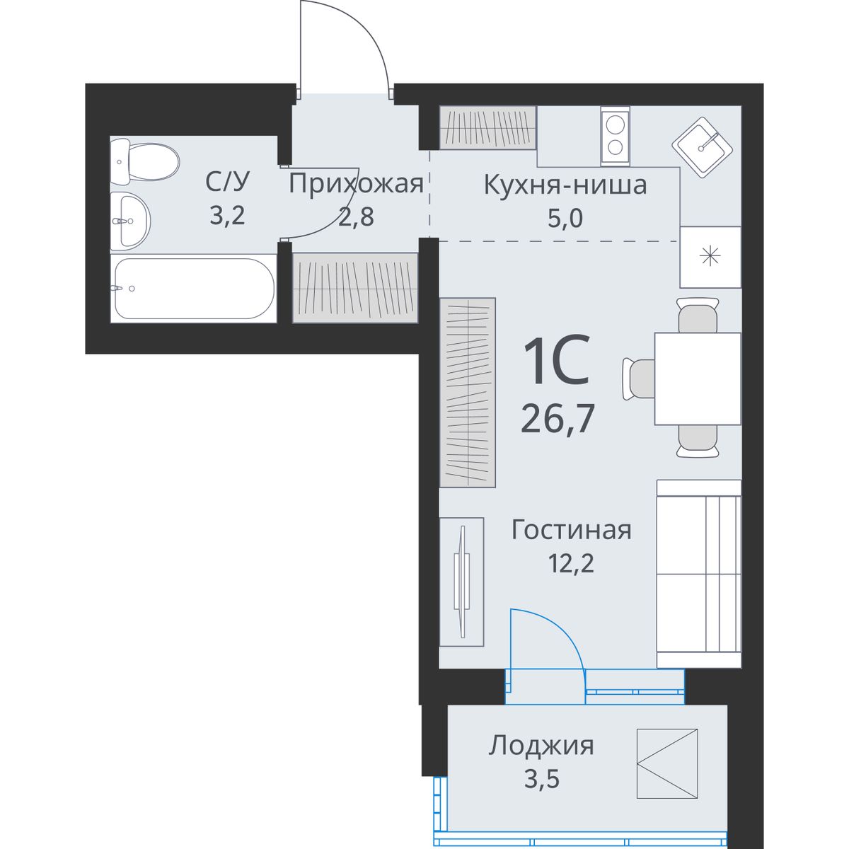 | Студии | от 25 м² | от 4,49 млн ₽ | 2 |