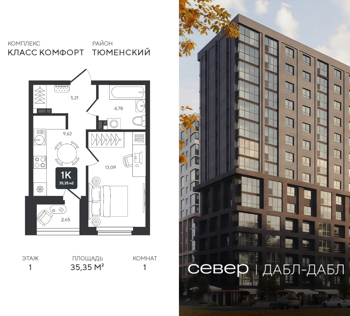 | 1-комн | от 35 м² до 51 м² | от 5,63 млн ₽ | 87 |