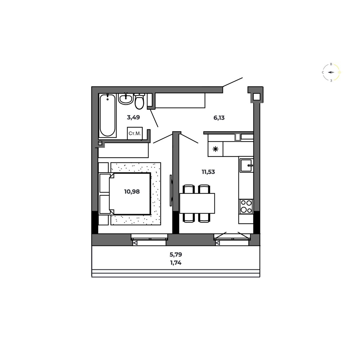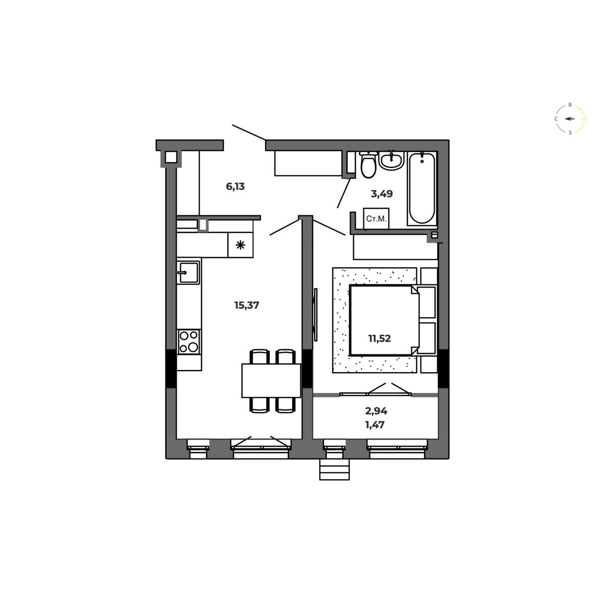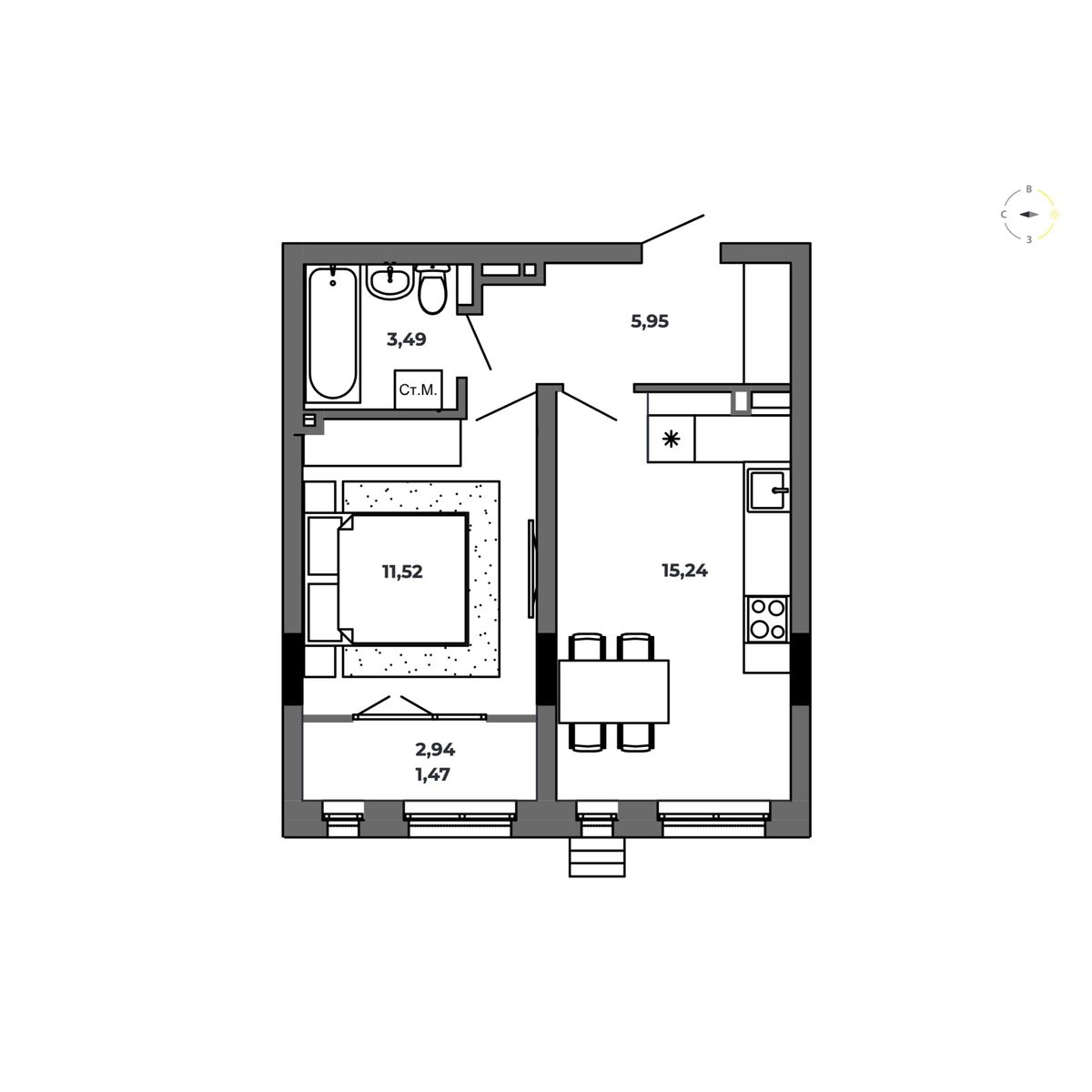 | 1-комн | от 33 м² до 40 м² | от 6,33 млн ₽ | 34 |