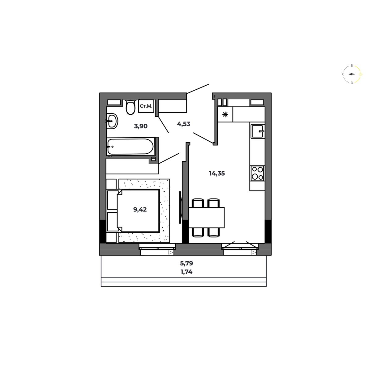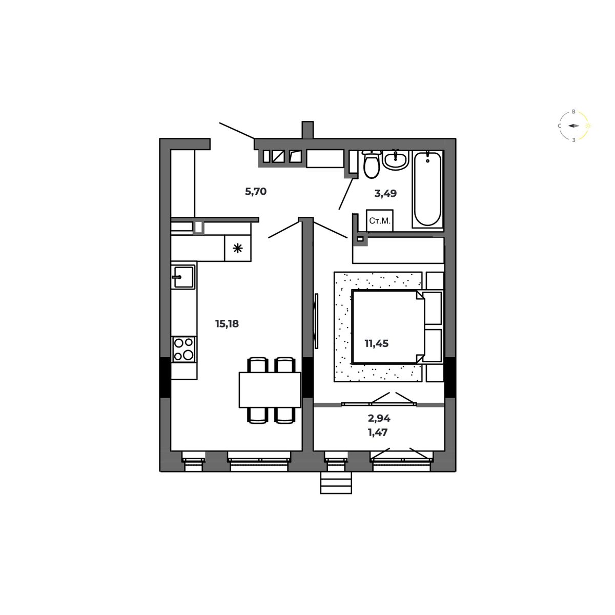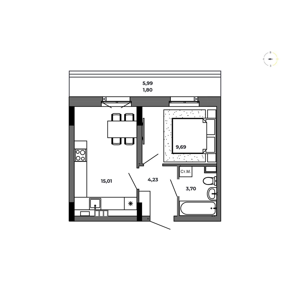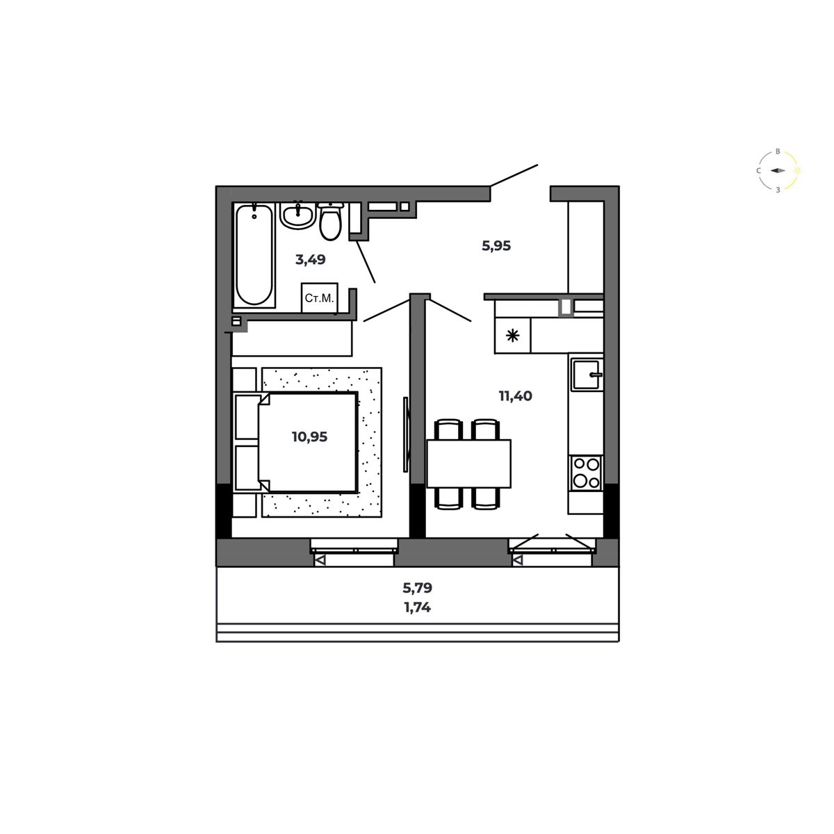 | 1-комн | от 33 м² до 40 м² | от 6,33 млн ₽ | 34 |