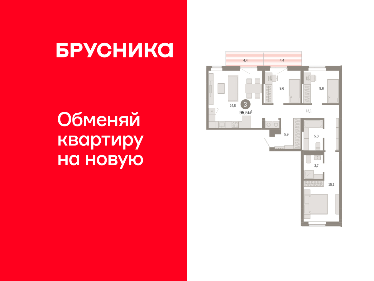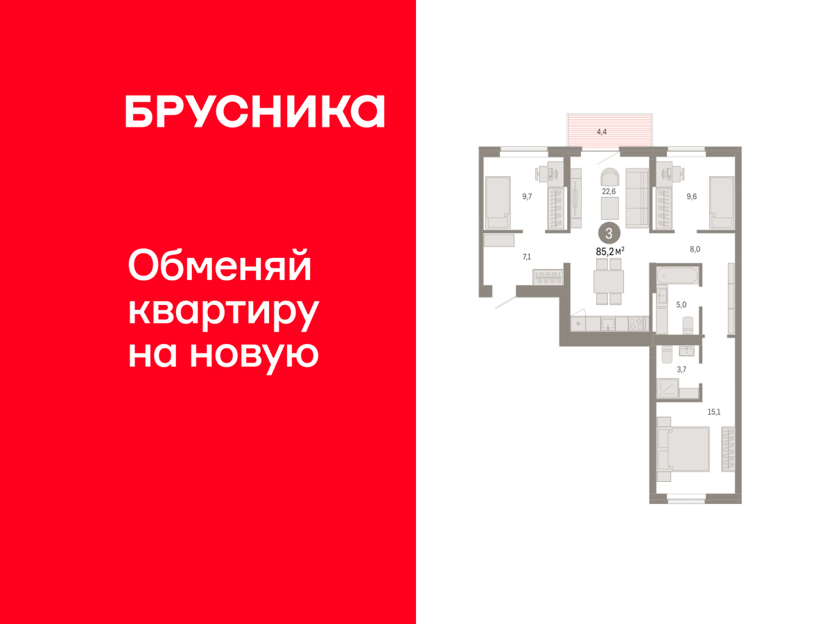 3-комнатная