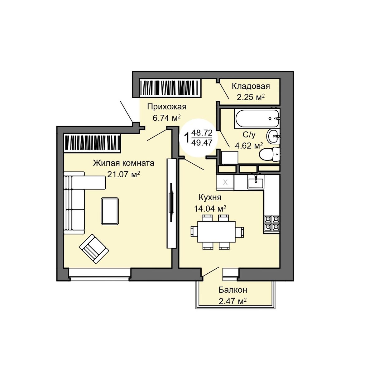 | 1-комн | от 42 м² до 53 м² | от 4,45 млн ₽ | 22 |