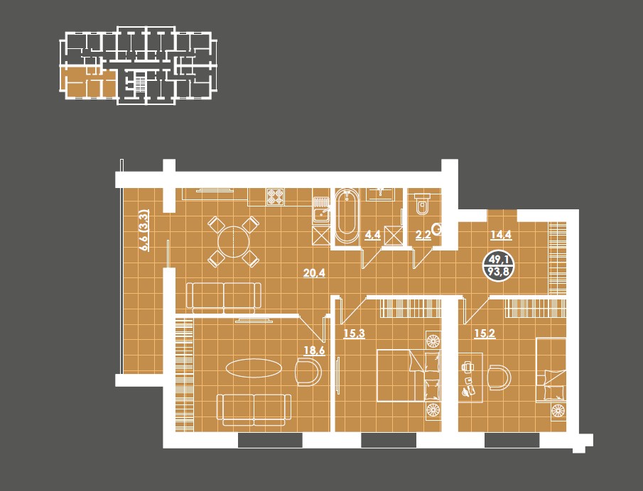 | 3-комн | от 93 м² до 96 м² | от 9,60 млн ₽ | 6 |